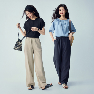 05416315 棉麻松紧腰宽松直筒休闲裤 佐丹奴亚麻裤 子女2026年春新款