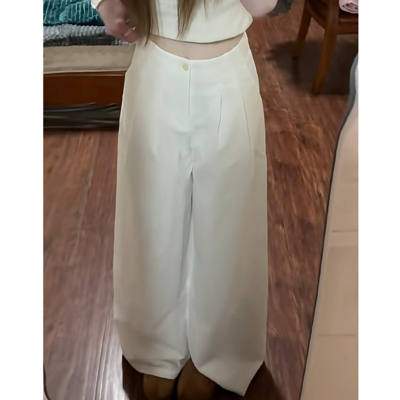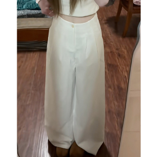 阔腿裤 女春秋2026年高腰宽松休闲垂感显瘦冰丝夏季 裤 白色奶芙西装