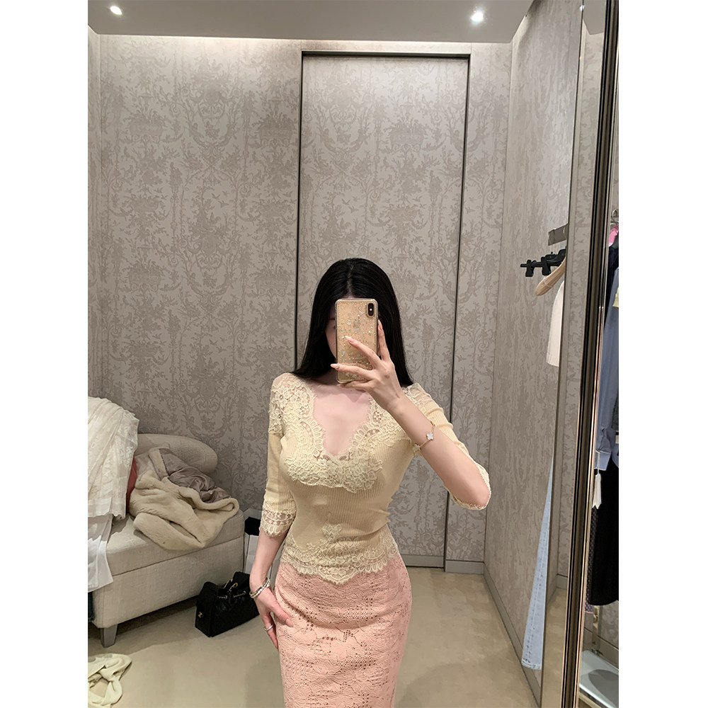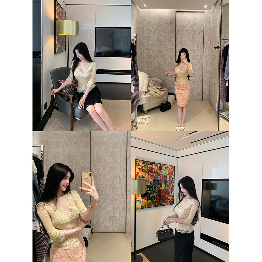 重磅手工裁剪耗时加纱蕾丝针织上衣女 温柔娇娇 THE SWAN司凰轻奢