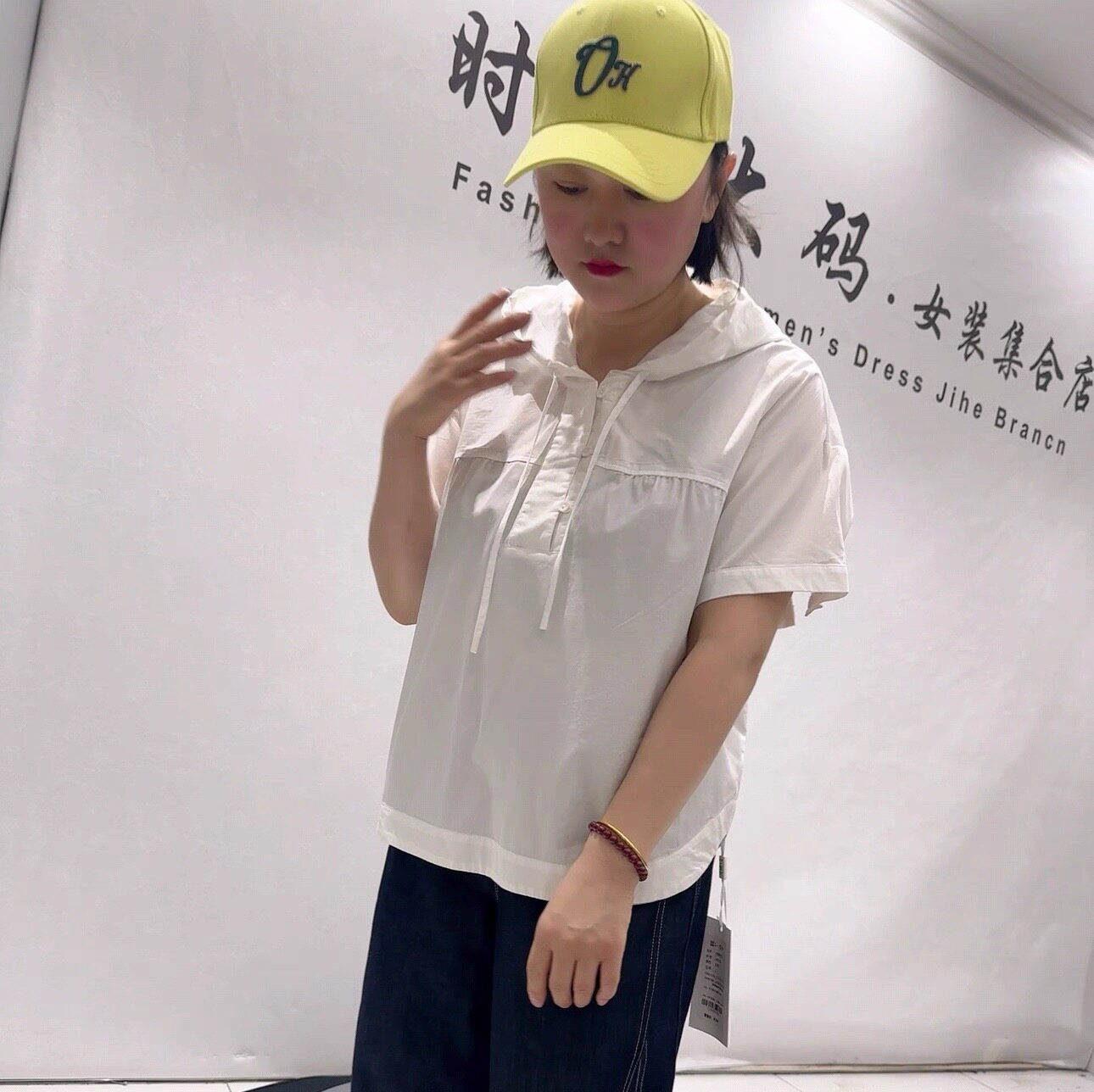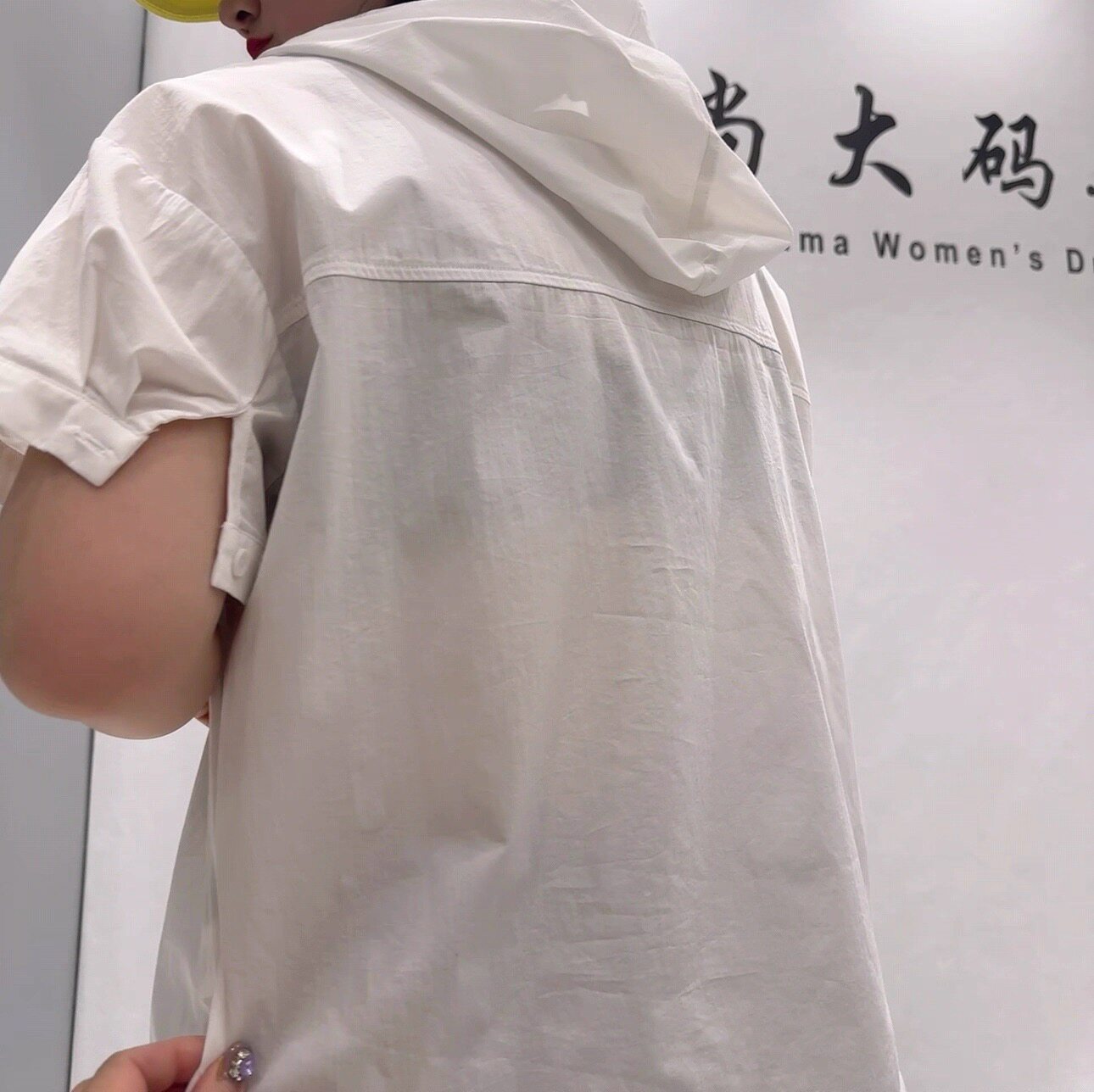 女装 天骄一生水26326初夏新款 加大码 衬衫 胖妹妹百搭上衣 连帽短袖