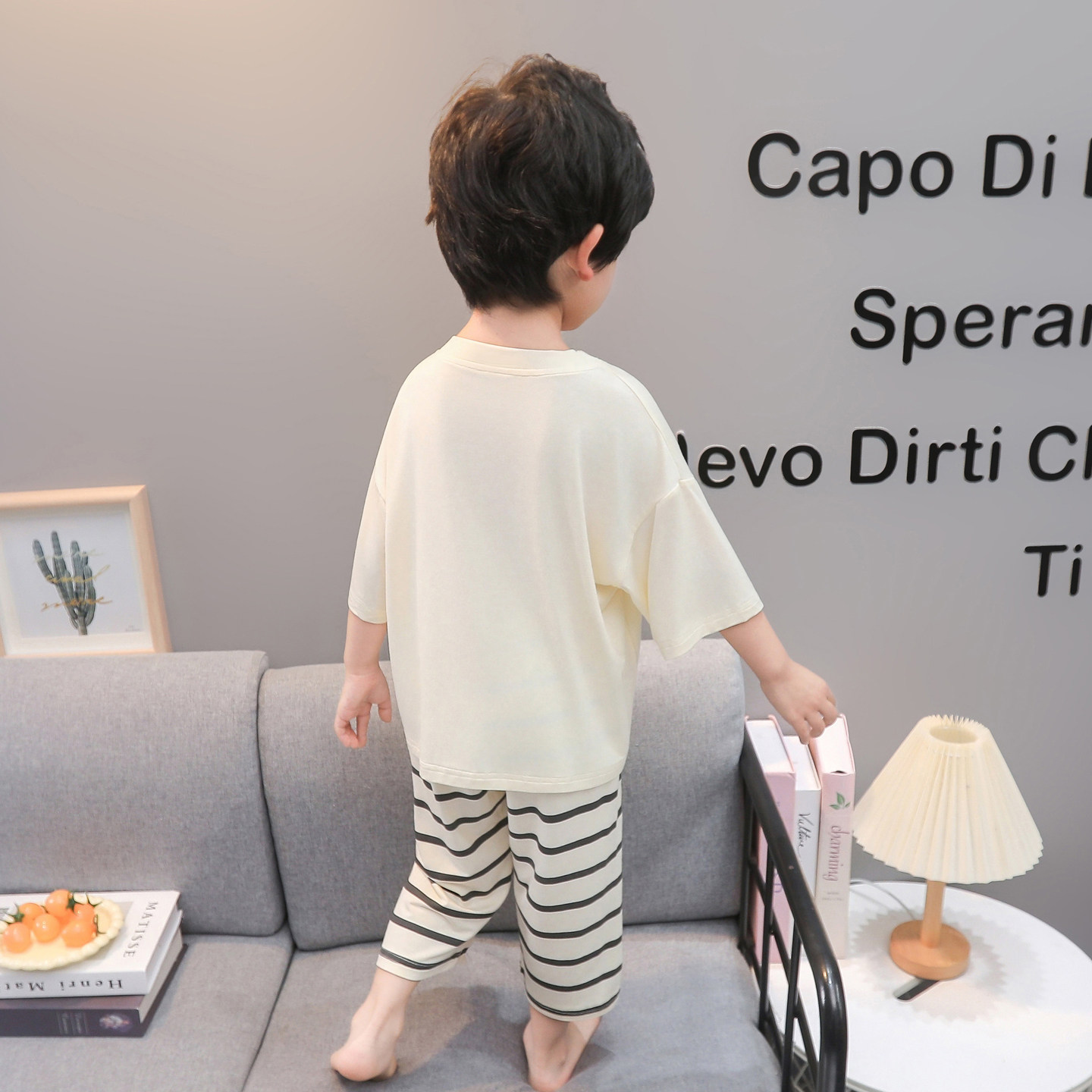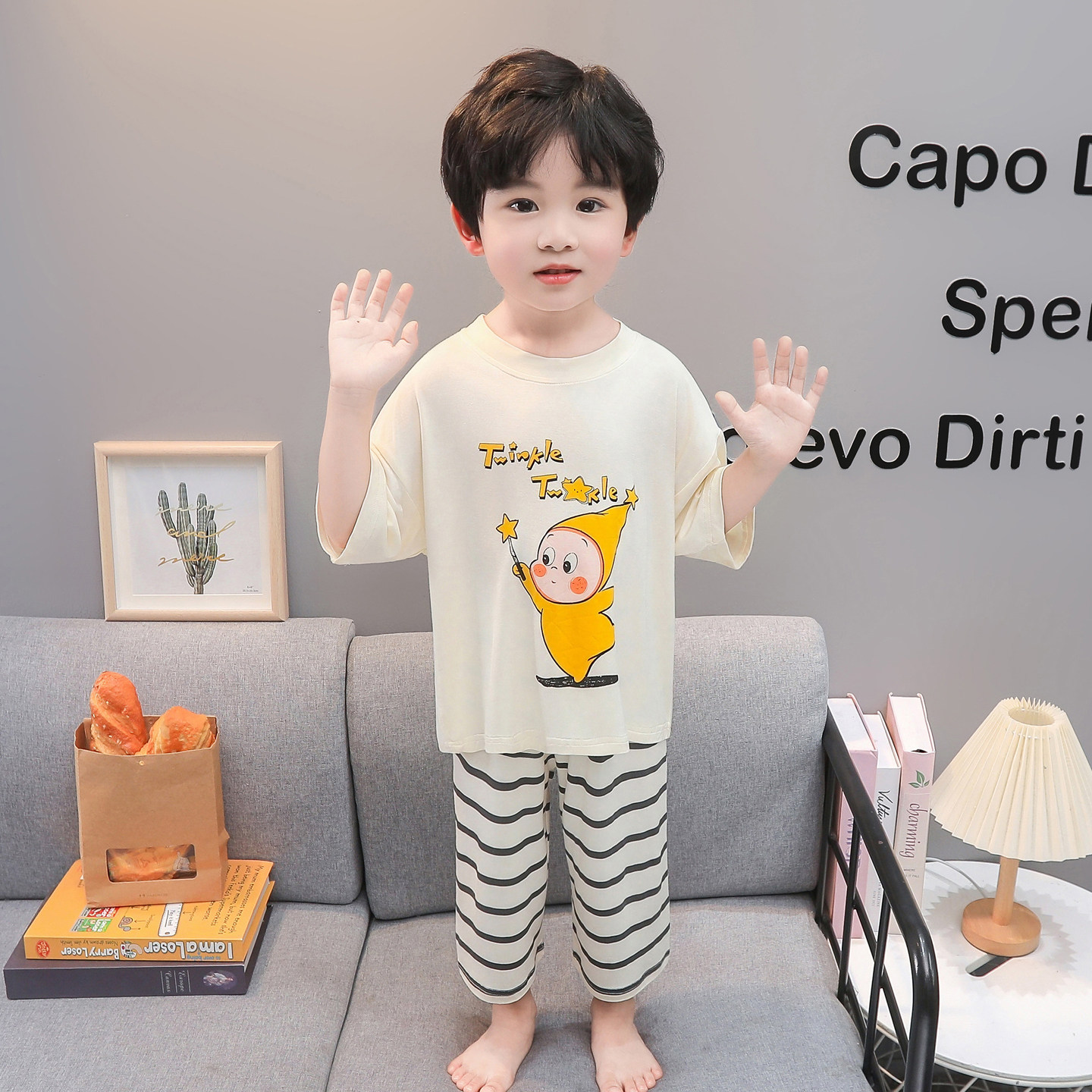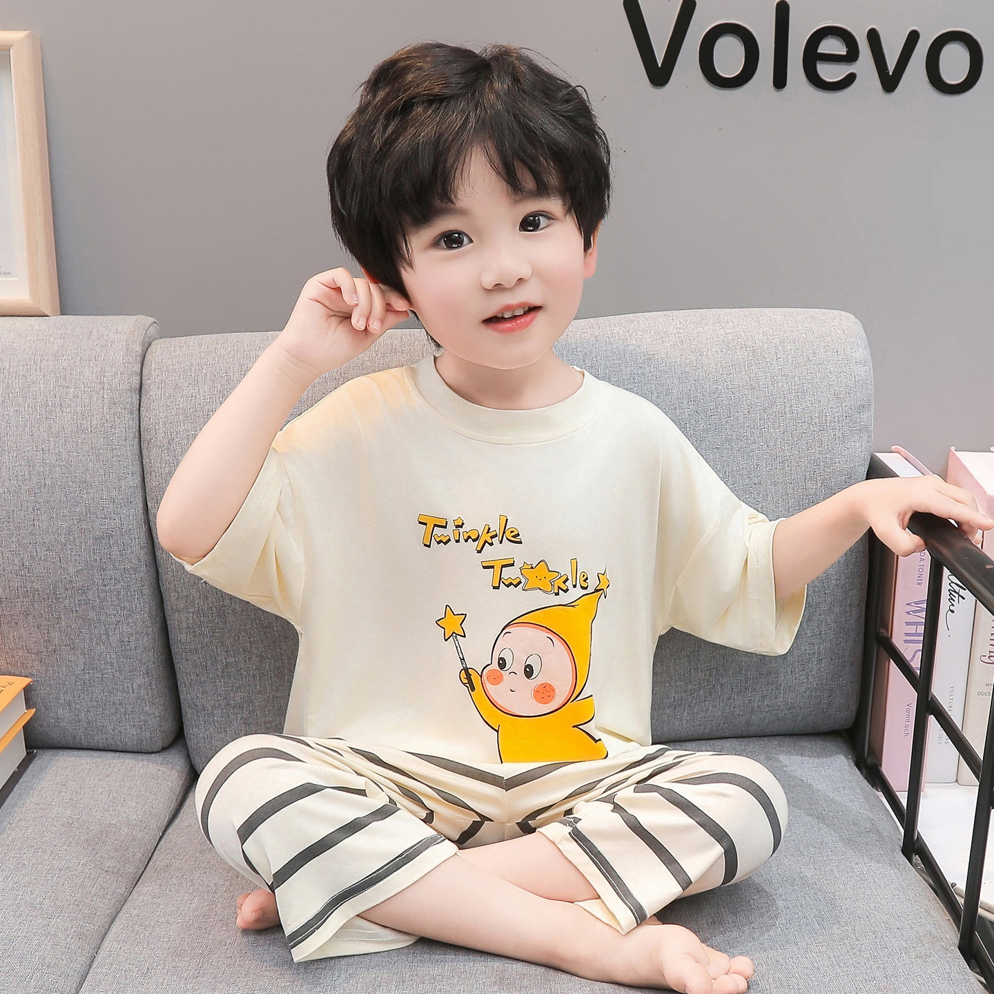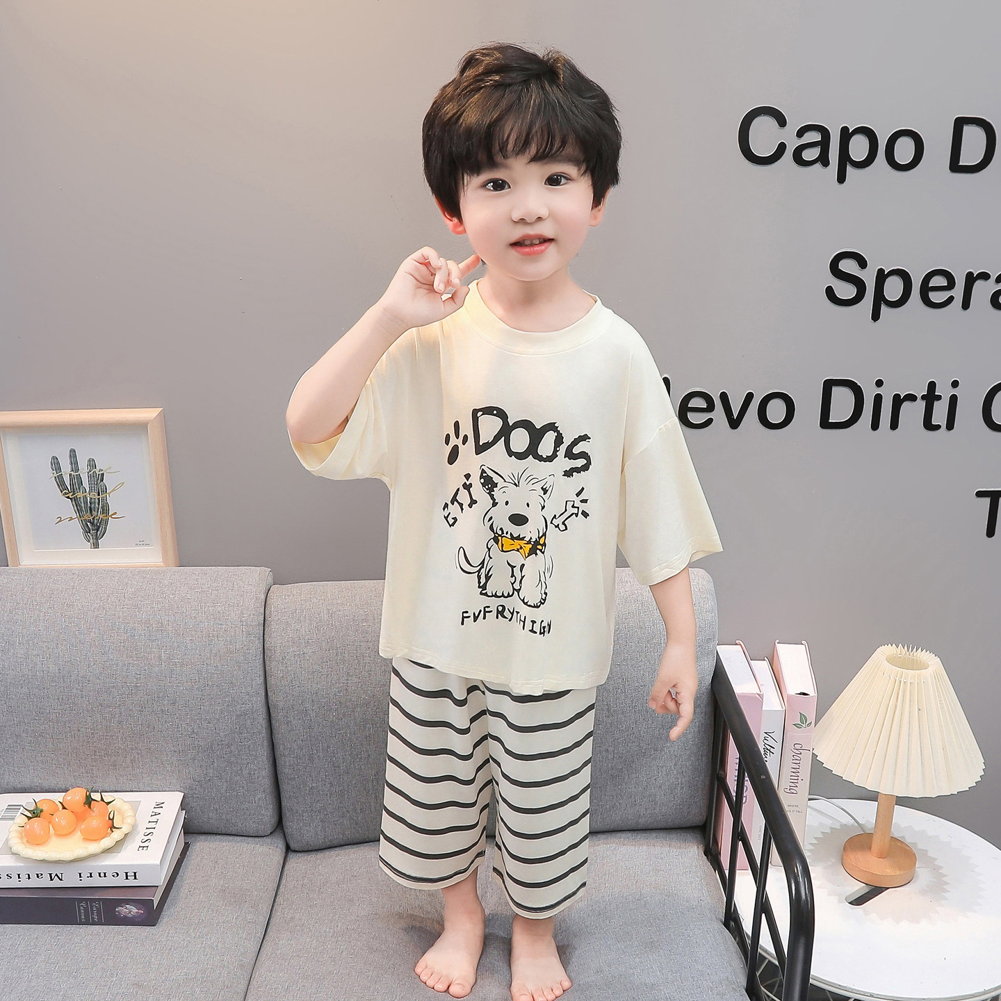 套装 男童卡通小狗睡衣夏季 家居服七分裤 七分袖 儿童透气家居服 薄款