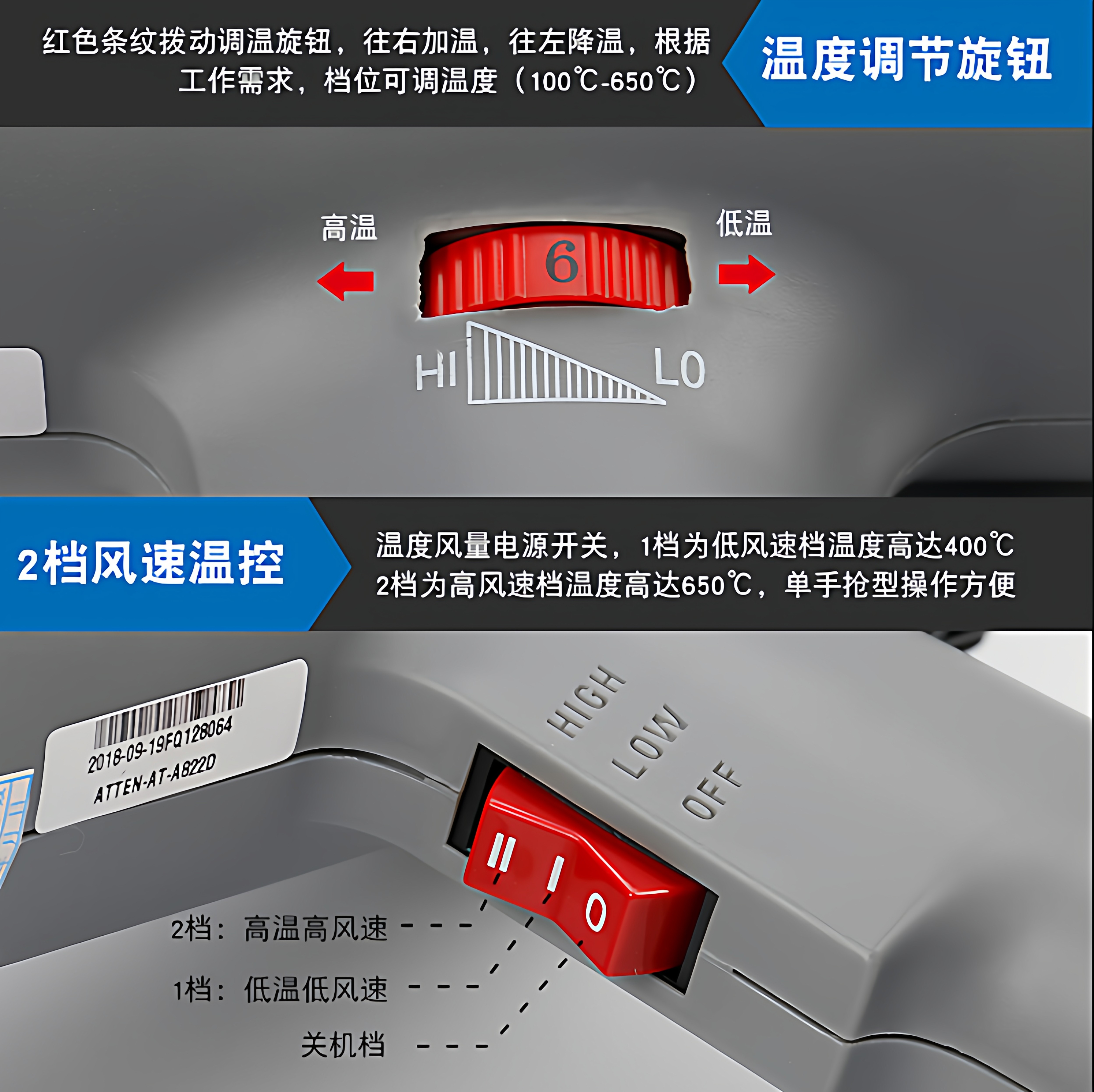 安立信热风枪小型贴膜烤枪大功率电子维修热缩膜吹风机工业级烘枪