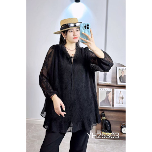 190斤胖妹mm甜美压褶A字型长袖 香港芸卉25303春加大码 女 大衫 法式