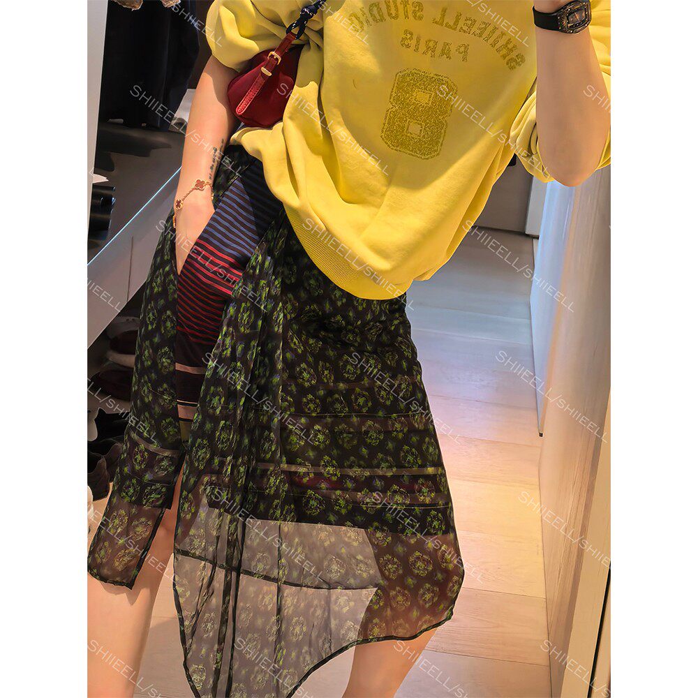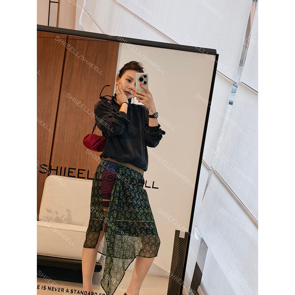 毛边 复古民族风印花拼接针织半身裙女中长款 欧洲站2026春季 新款