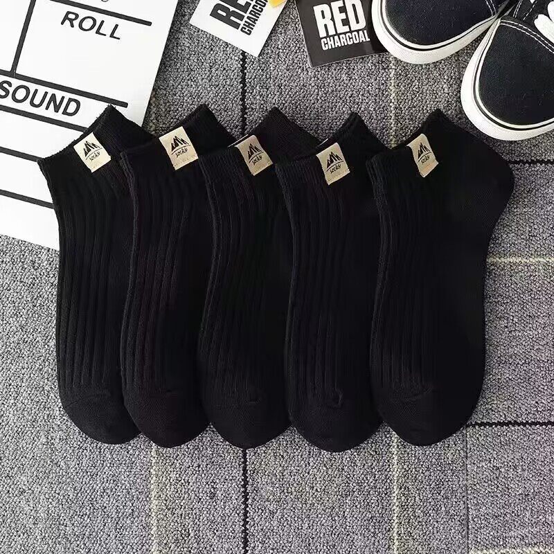 纯色百搭吸汗防臭透气低帮运动袜船袜男款 5双袜子男士 短袜春夏款