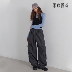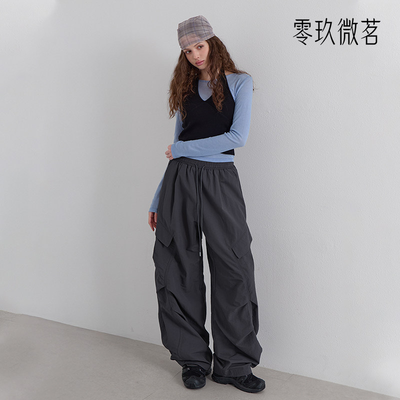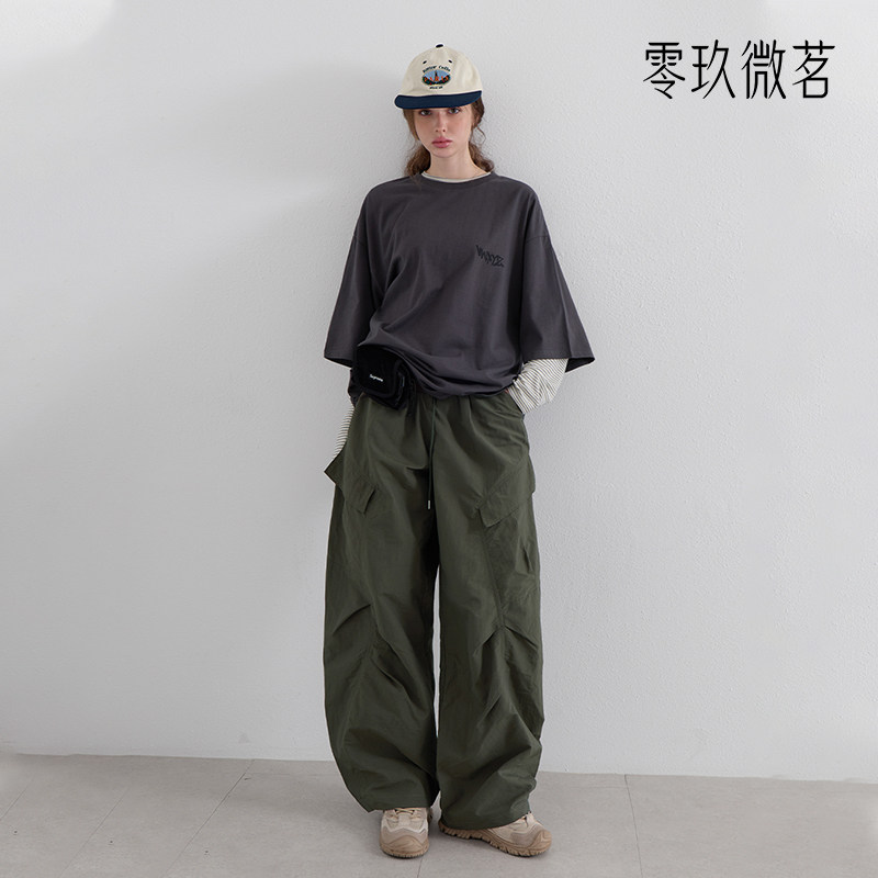裤 09women2026韩国大码 防水尼龙宽松工装 休闲舒适直筒裤 86354 女装