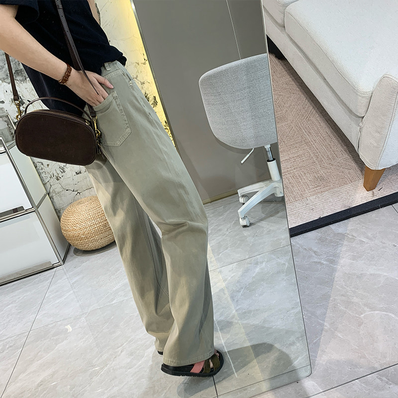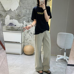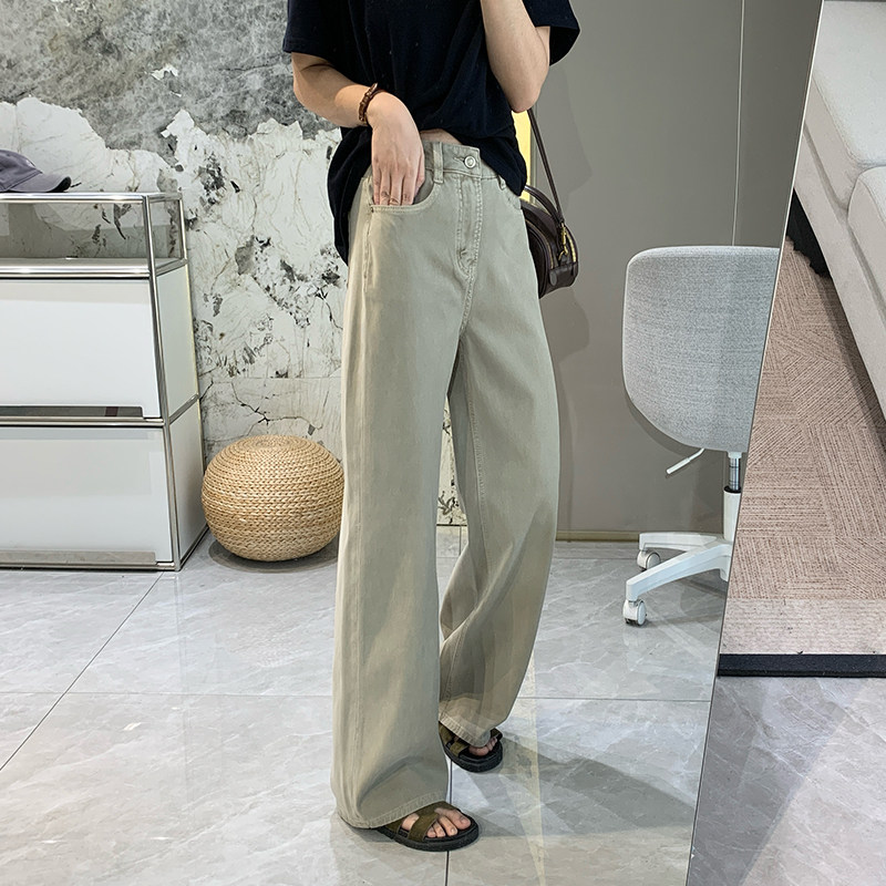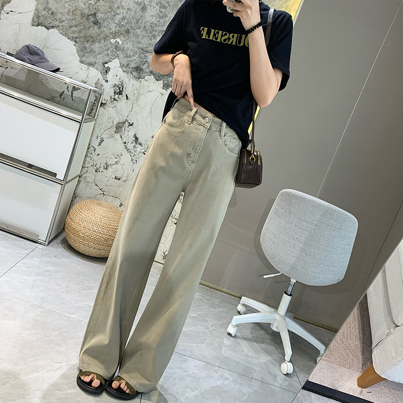 显瘦宽松阔腿裤 糯米奶咖直筒牛仔裤 莱赛尔高腰长裤 新款 子 女春季