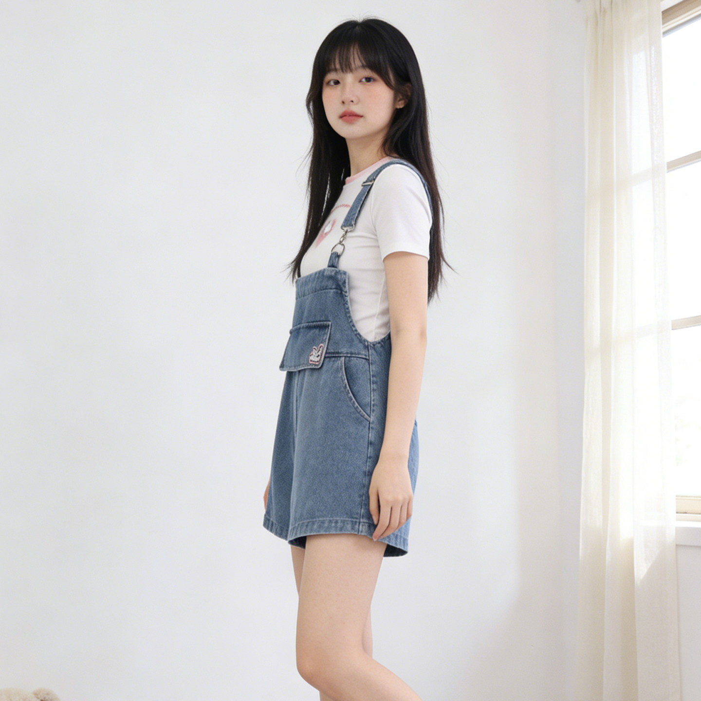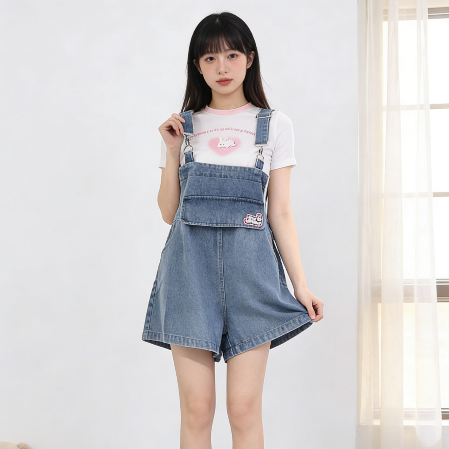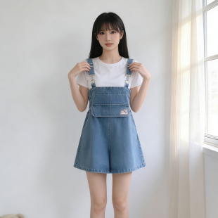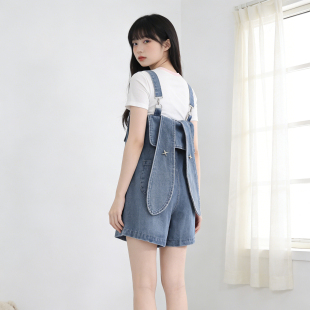 女阔腿连体a字裤 胖mm兔耳朵减龄阔腿牛仔背带短裤 子 大码 2026夏季
