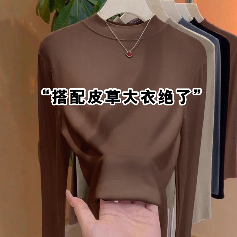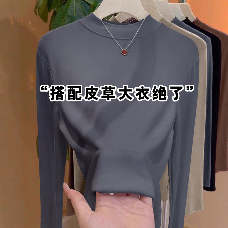 内搭洋气可外穿中领叠穿上衣 新款 小立领白色螺纹打底衫 女2026春季