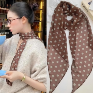 子配饰腰带 长条围巾飘带颈饰裤 法式 复古棕色波点丝巾女士系脖薄款