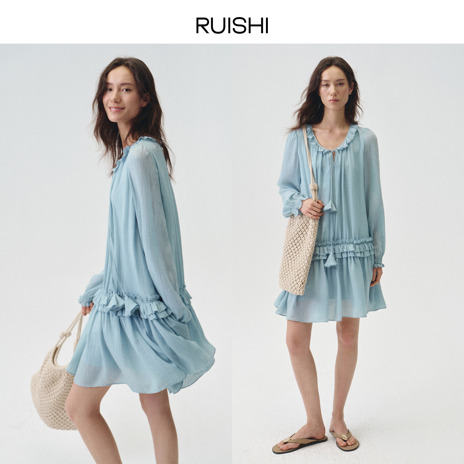 云絮柔漾 RUISHI芮时 宽松度假风荷叶边连衣裙女夏 直播专属