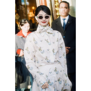 温柔风中长裙女 系带气质印花连衣裙女法式 王楚然明星同款 2026新款