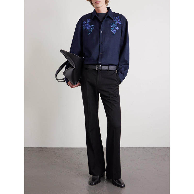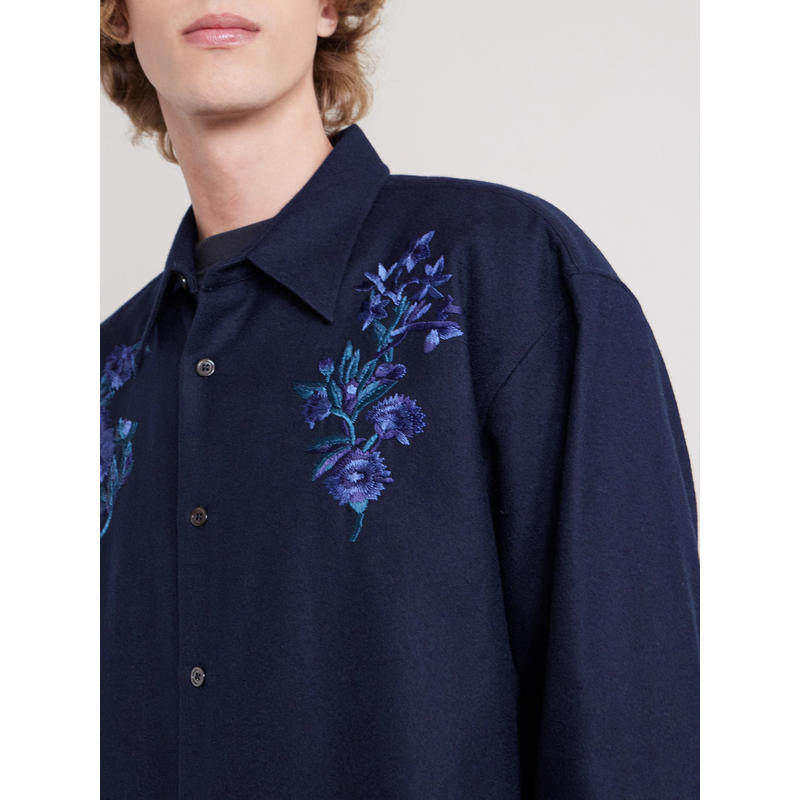 德赖斯·范诺顿 Noten 男士 SS26 刺绣羊毛法兰绒 Dries 衬衫 Van
