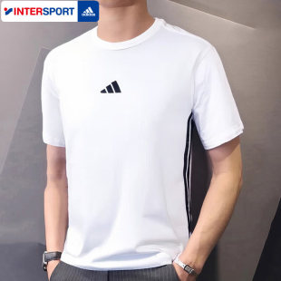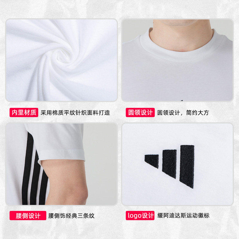 三条纹运动服时尚 新款 简约圆领透气白色t恤 男夏季 阿迪达斯短袖