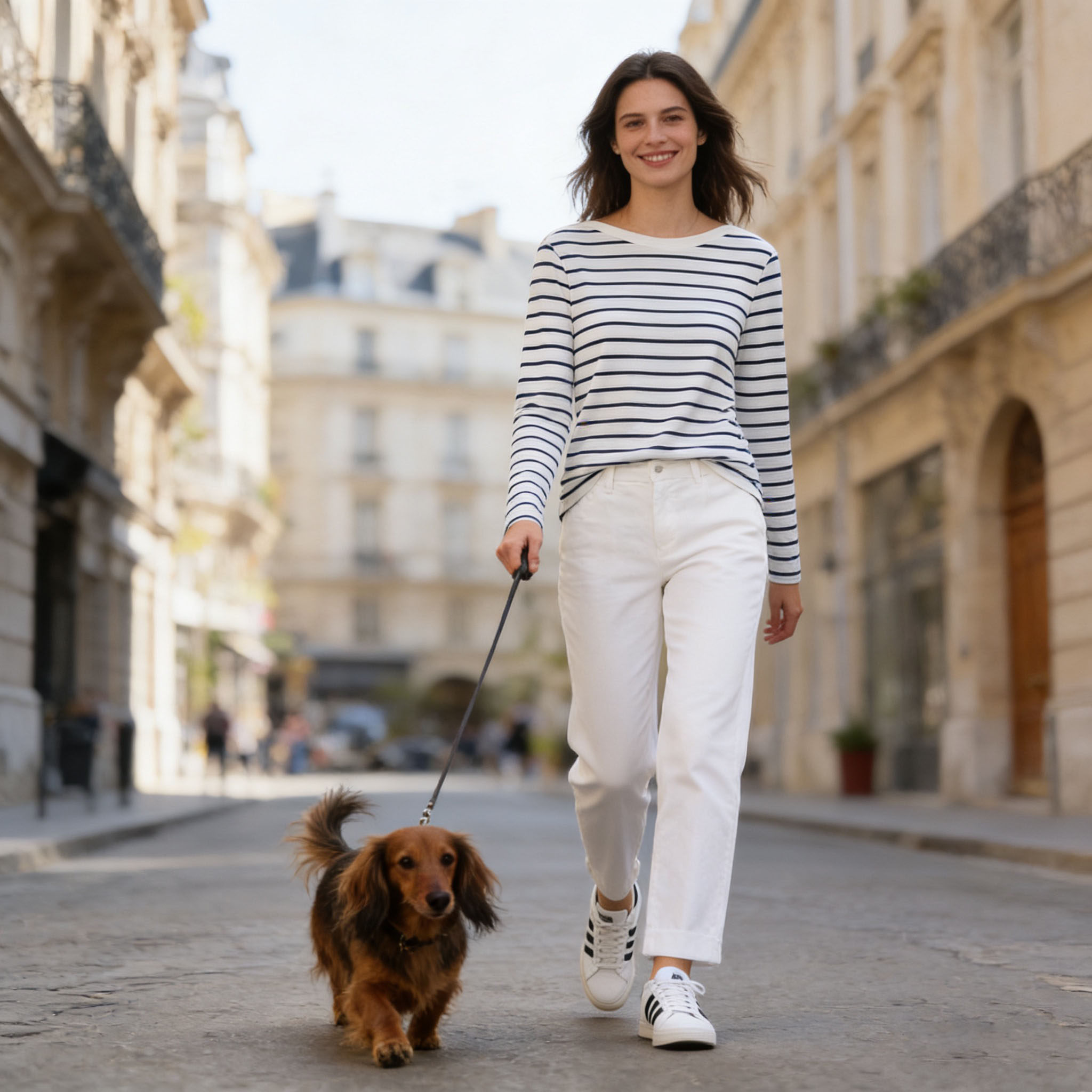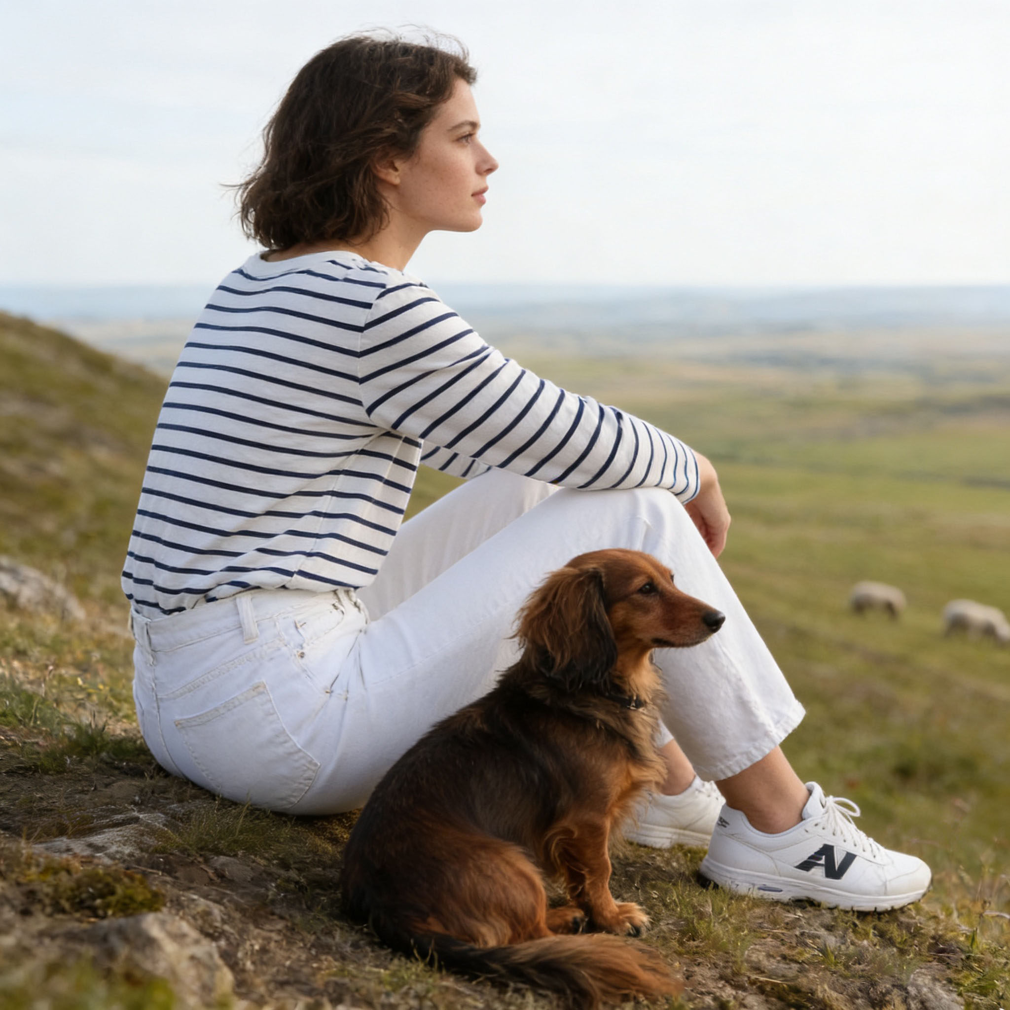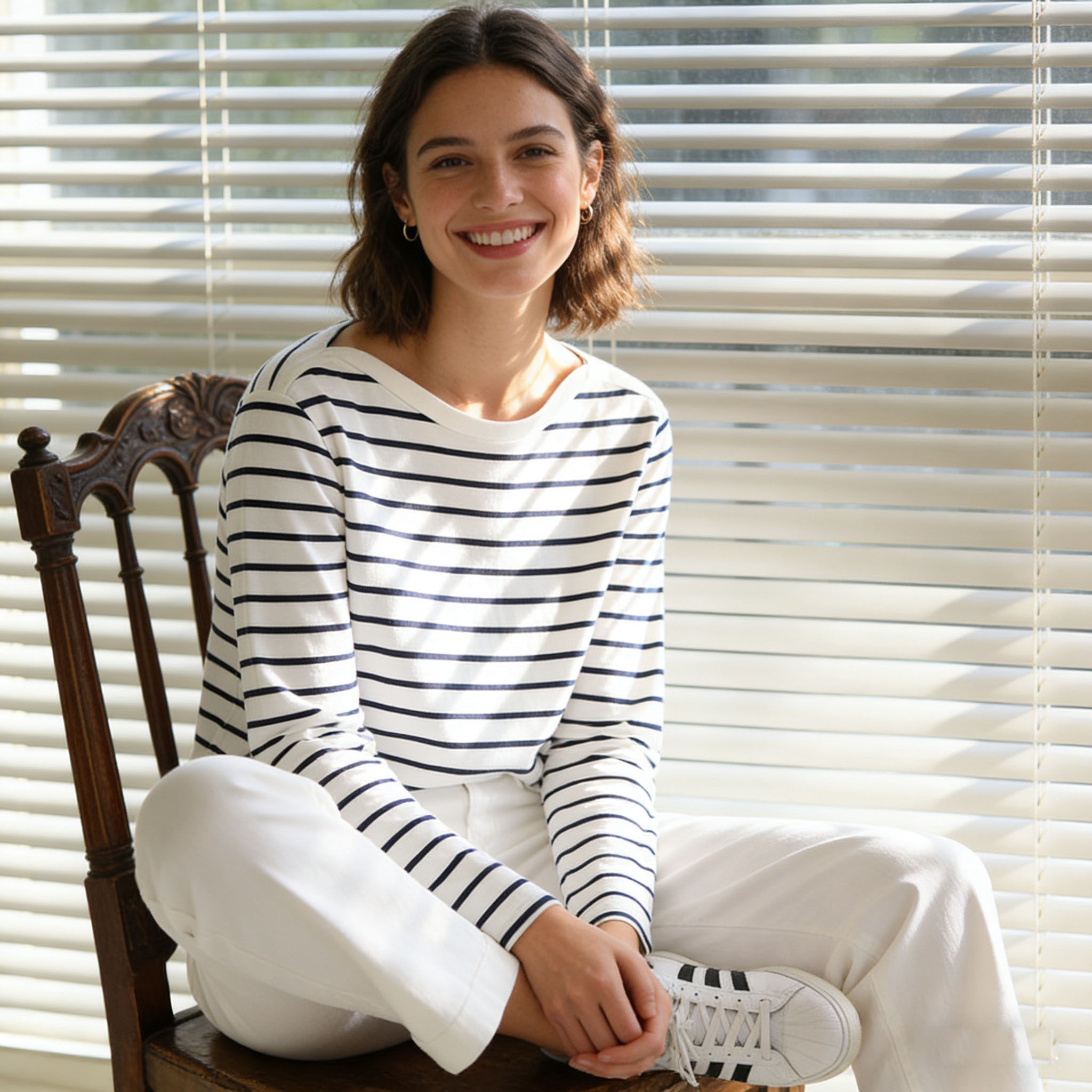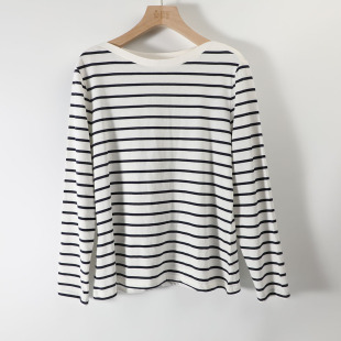 打底薄 胖mm大码 大航海家纯棉深蓝白条纹长袖 T恤女外穿水手海魂衫