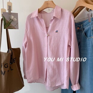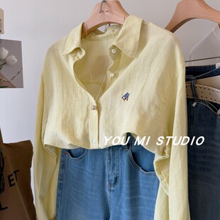 女春 衬衫 春日蜜糖 韩国小板凳刺绣天丝苎麻慵懒宽松百搭休闲长袖