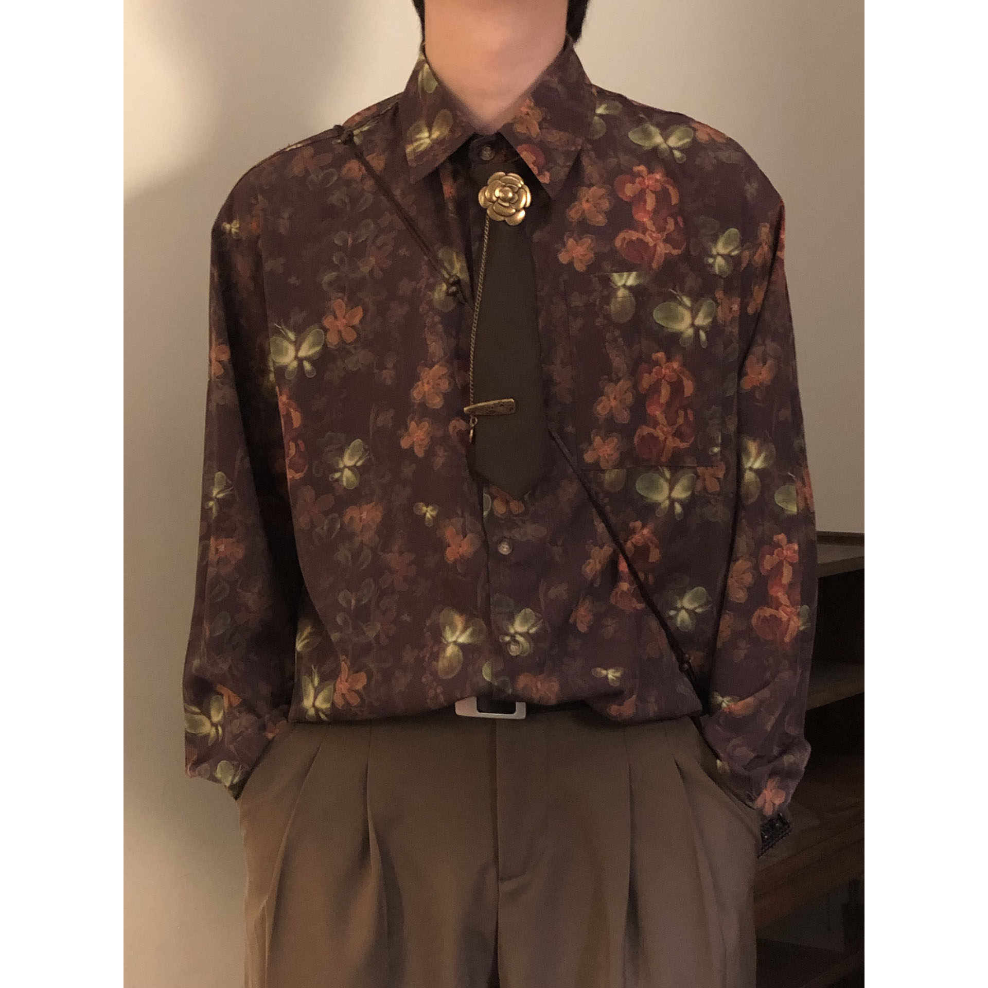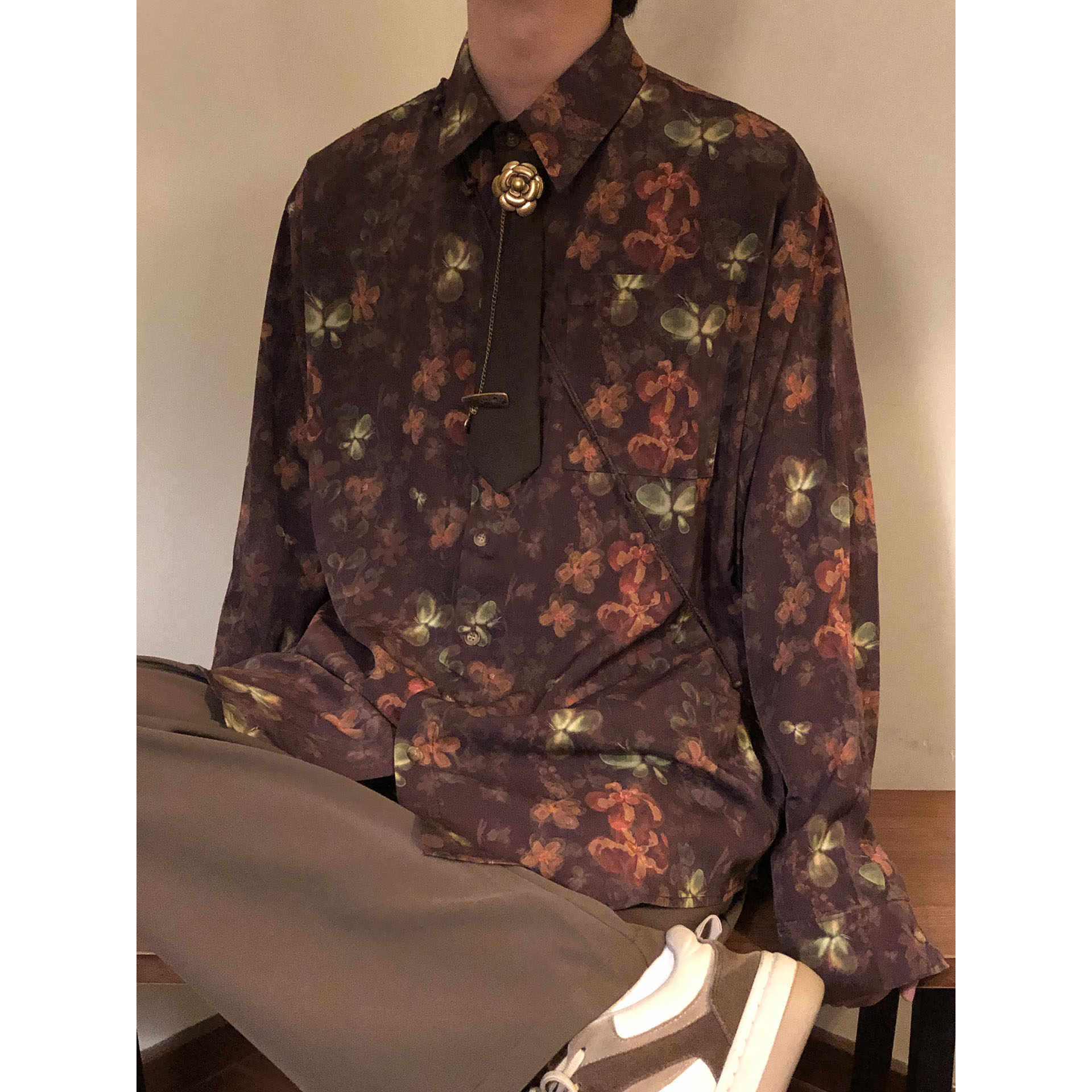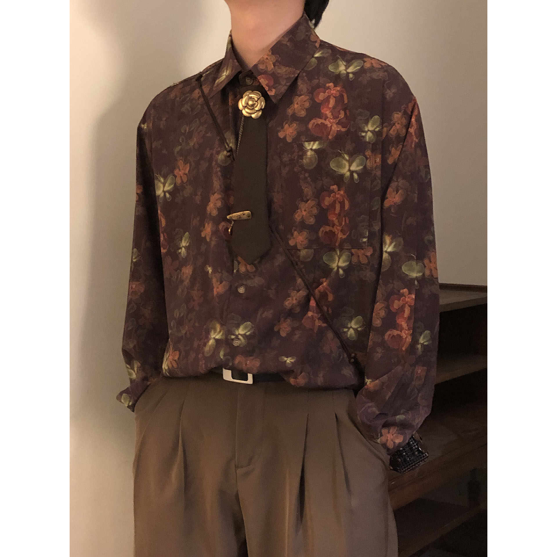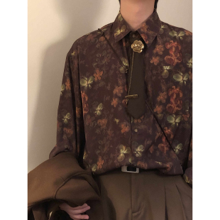 男女宽松度假薄款 衬衫 外套百搭上衣衬衣 日系复古花卉印花长袖 春季