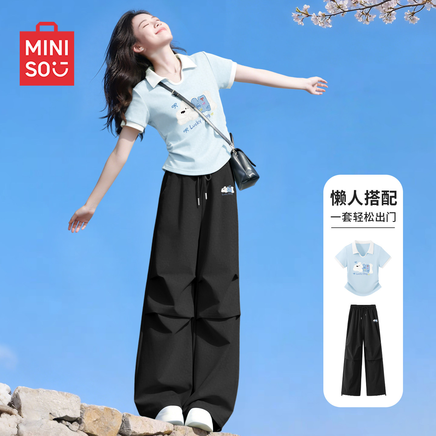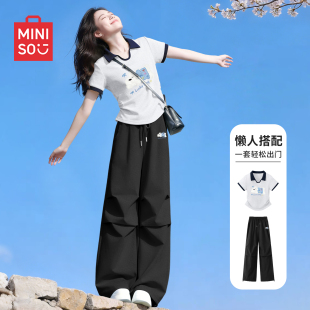 裤 名创优品夏季 t恤工装 女小个子修身 2026超火穿搭一整套D 运动套装