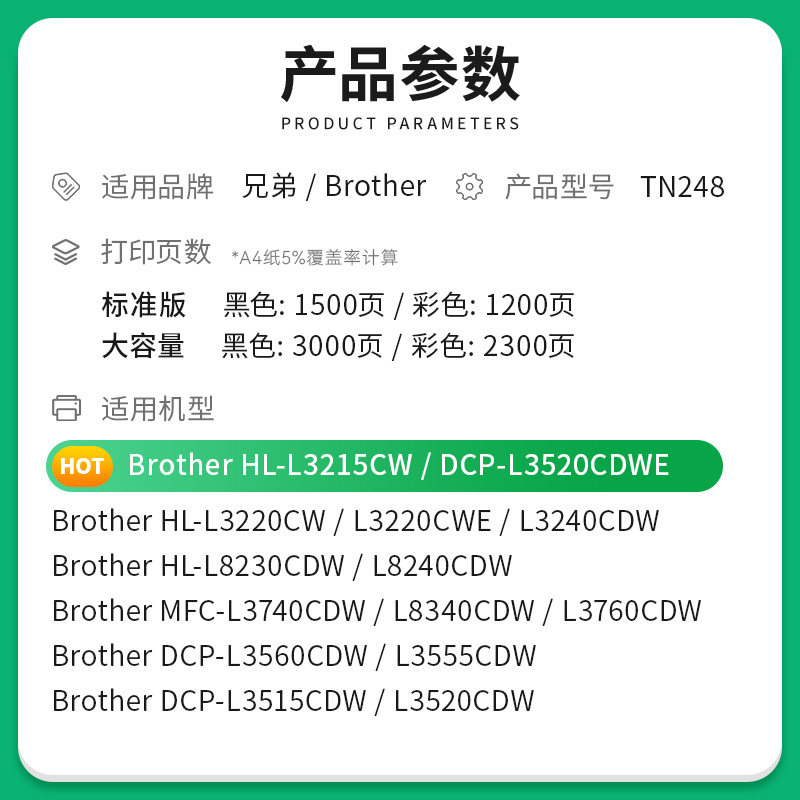 才进TN248粉盒适用欧洲区兄弟L3215CW打印机HL L8240CDW L3220CWE
