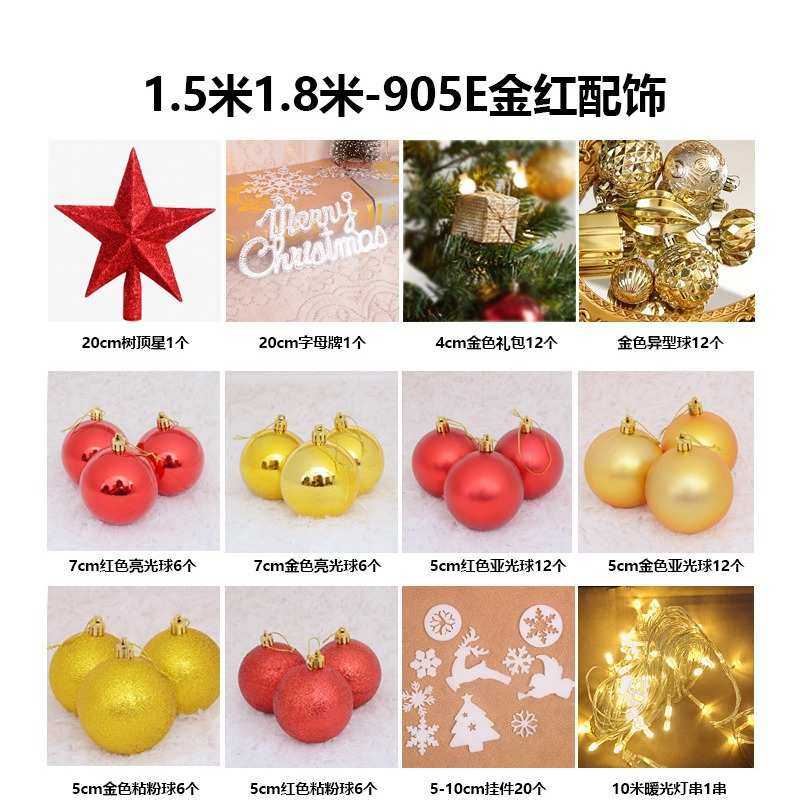 圣诞树装 饰挂件配件包905E套餐金色红色1.5米树配饰1.8金色材料包