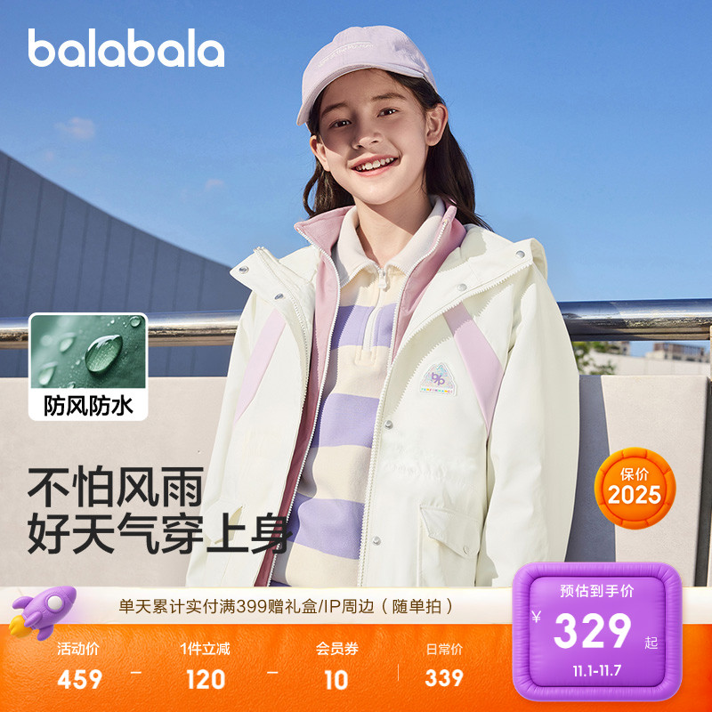 秋户外两件套 巴拉巴拉女外套儿童上衣2025新款 风壳衣商场同款