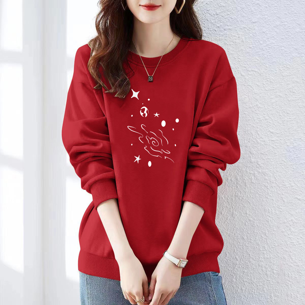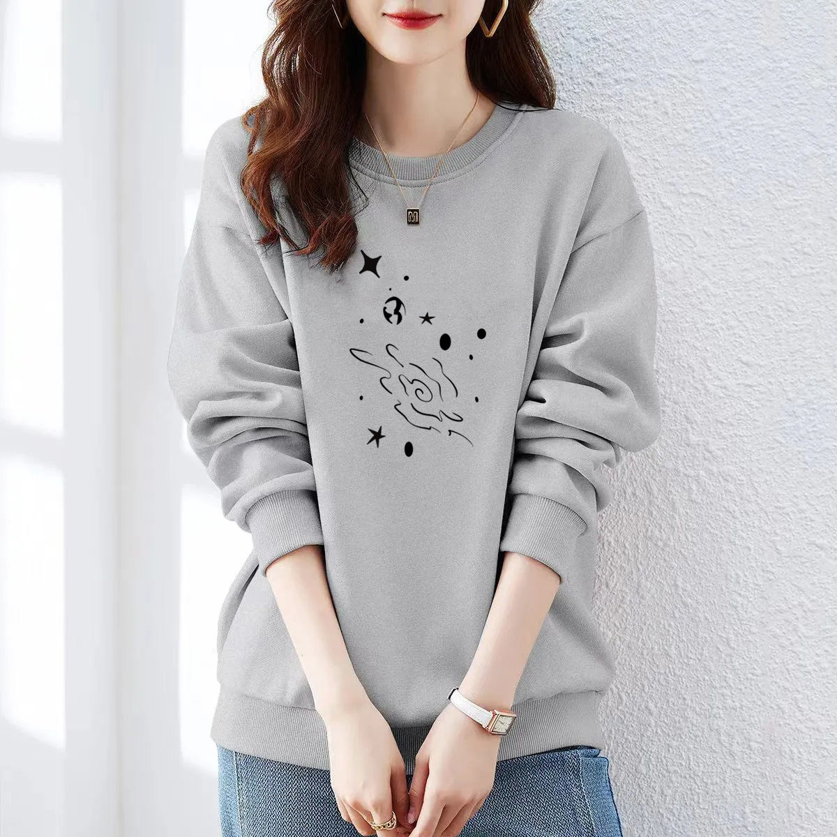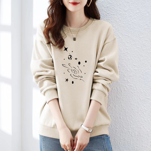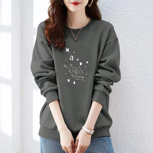 宽松加绒百搭纯棉圆领上衣潮 卫衣女秋冬新款 高端大牌即墨正品 薄款