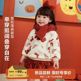 柔软保暖加绒红色拜年上衣 迷你巴拉男女童宝宝卫衣冬季 新年卫衣
