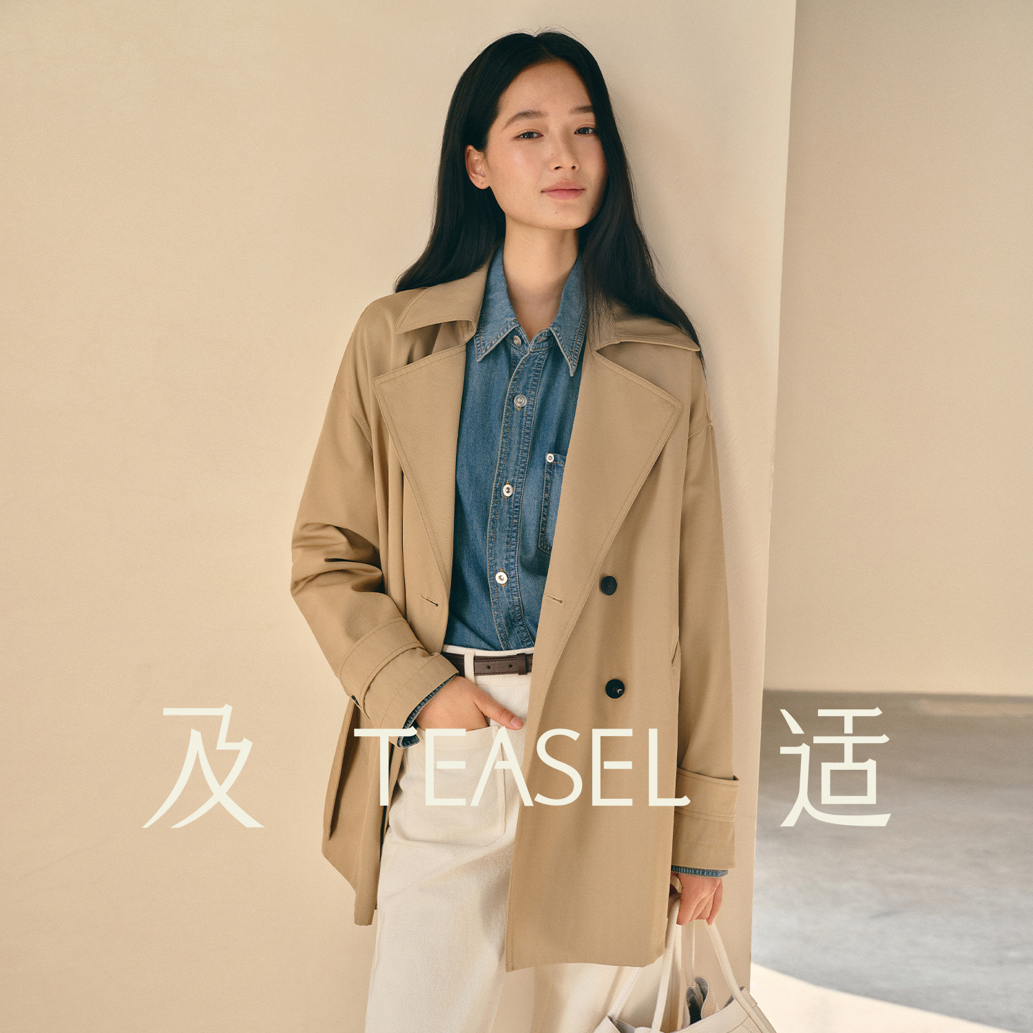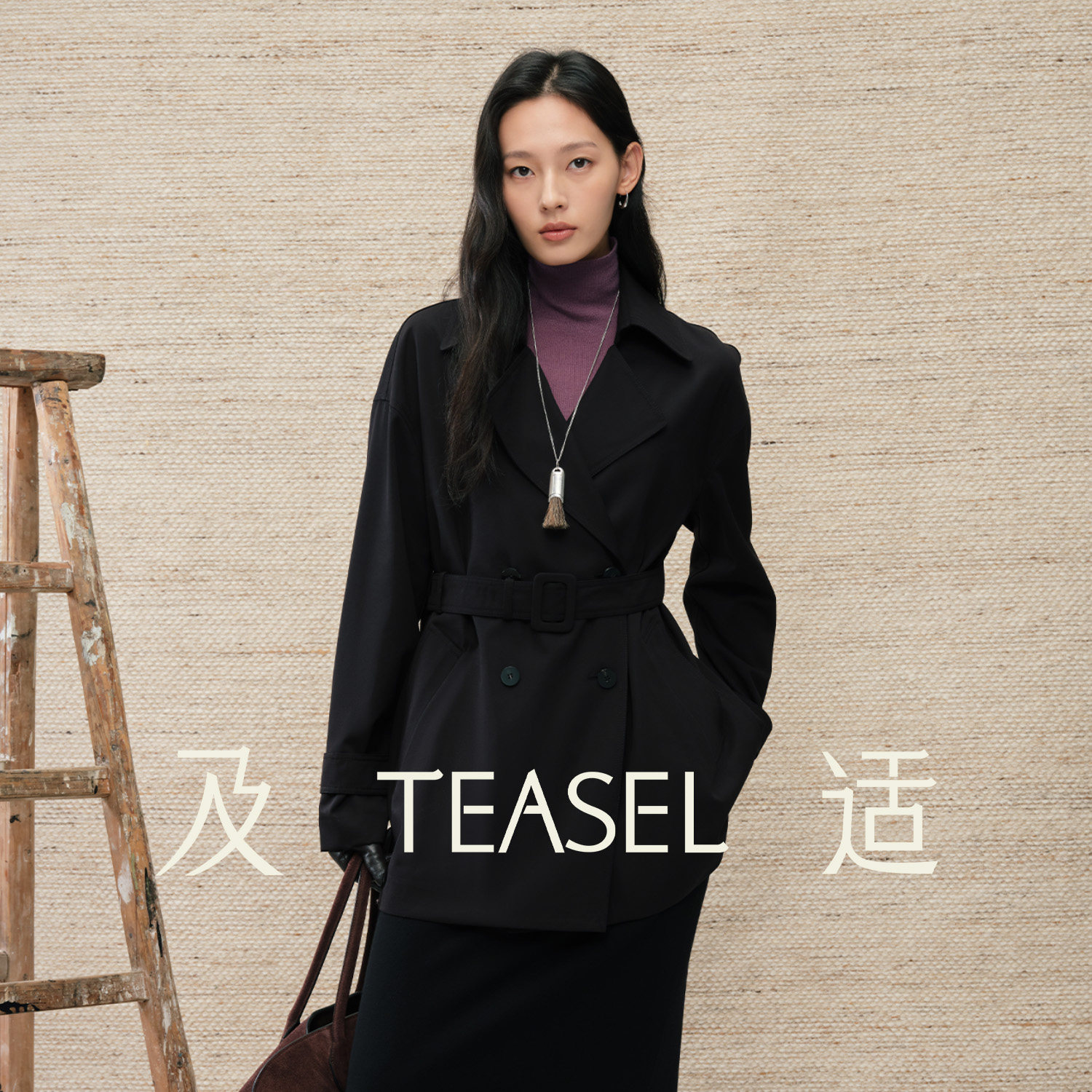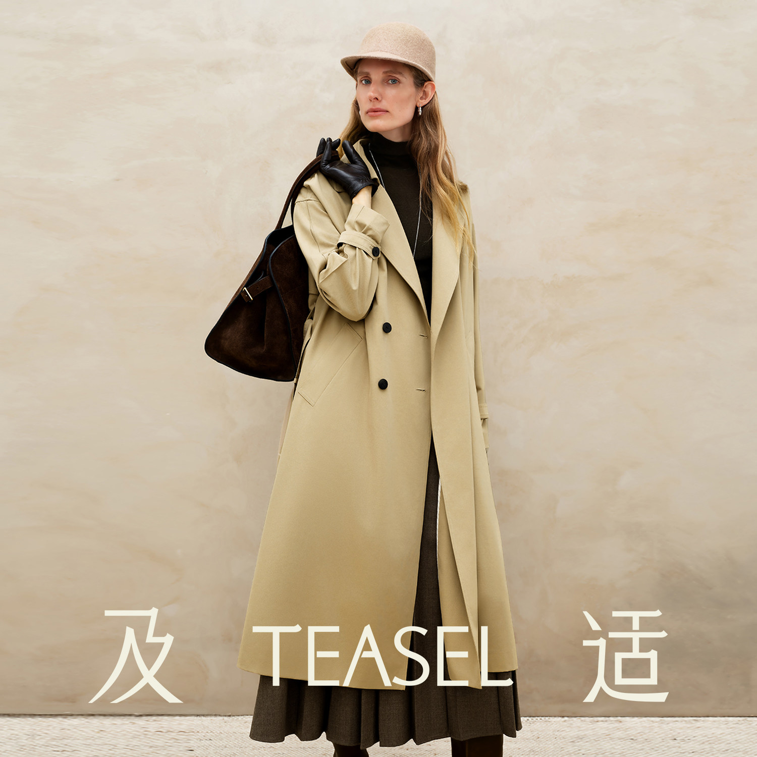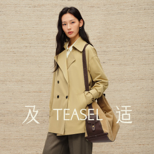 TEASEL「柔缎风骨」澳毛醋酸抗皱易打理双排扣时髦收腰短风衣外套