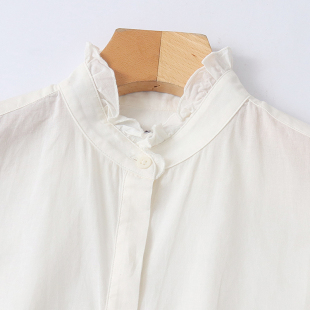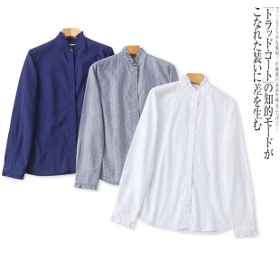 通勤风休闲长袖 花边立领暗扣时尚 衬衣 新款 B4430外贸欧美女士衬衫