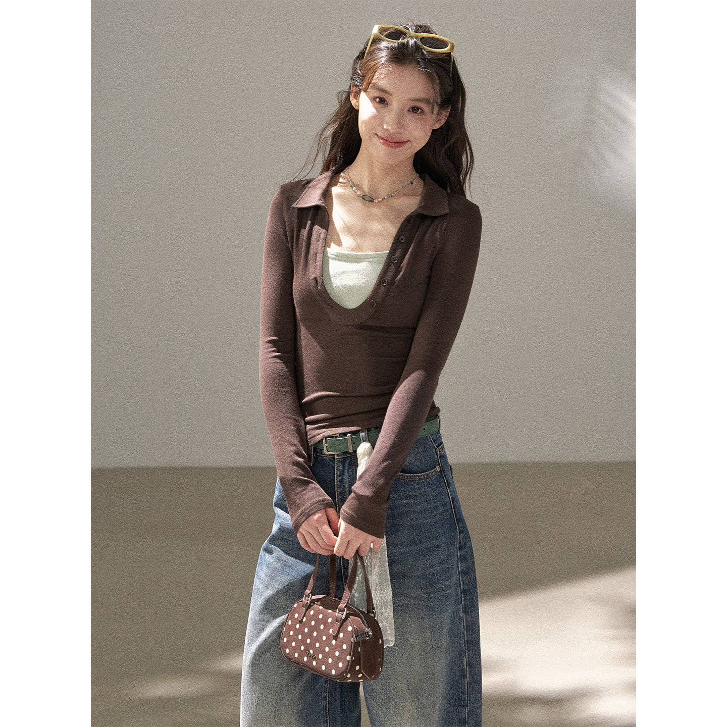 BEATS 亨利领百搭长袖 气质基础款 POLO打底衫 上衣 拼色修身 FUTURE