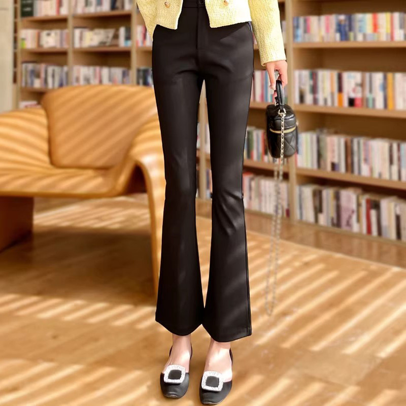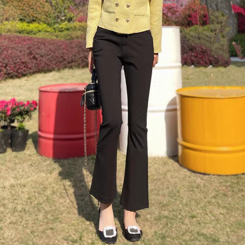 裤 百搭小个子145七分西装 子8 女高腰弹力显瘦修身 黑色微喇叭休闲裤
