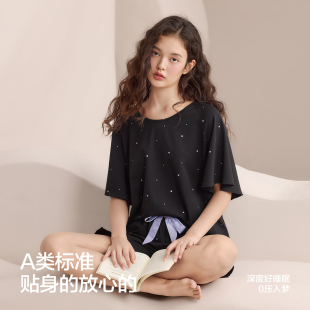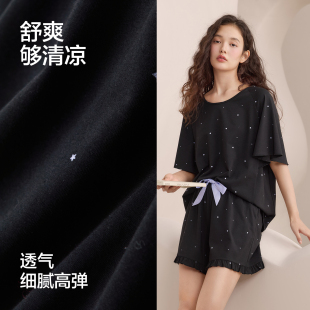 薄款 凉感夏季 宽松休闲慵懒风外穿A类家居服 短裤 红豆女士睡衣短袖