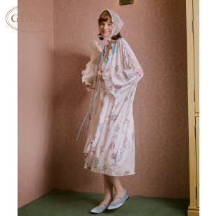 女家居服两件套A 睡袍春夏小贝壳印花吊带睡裙新款 Gukoo 果壳长袖