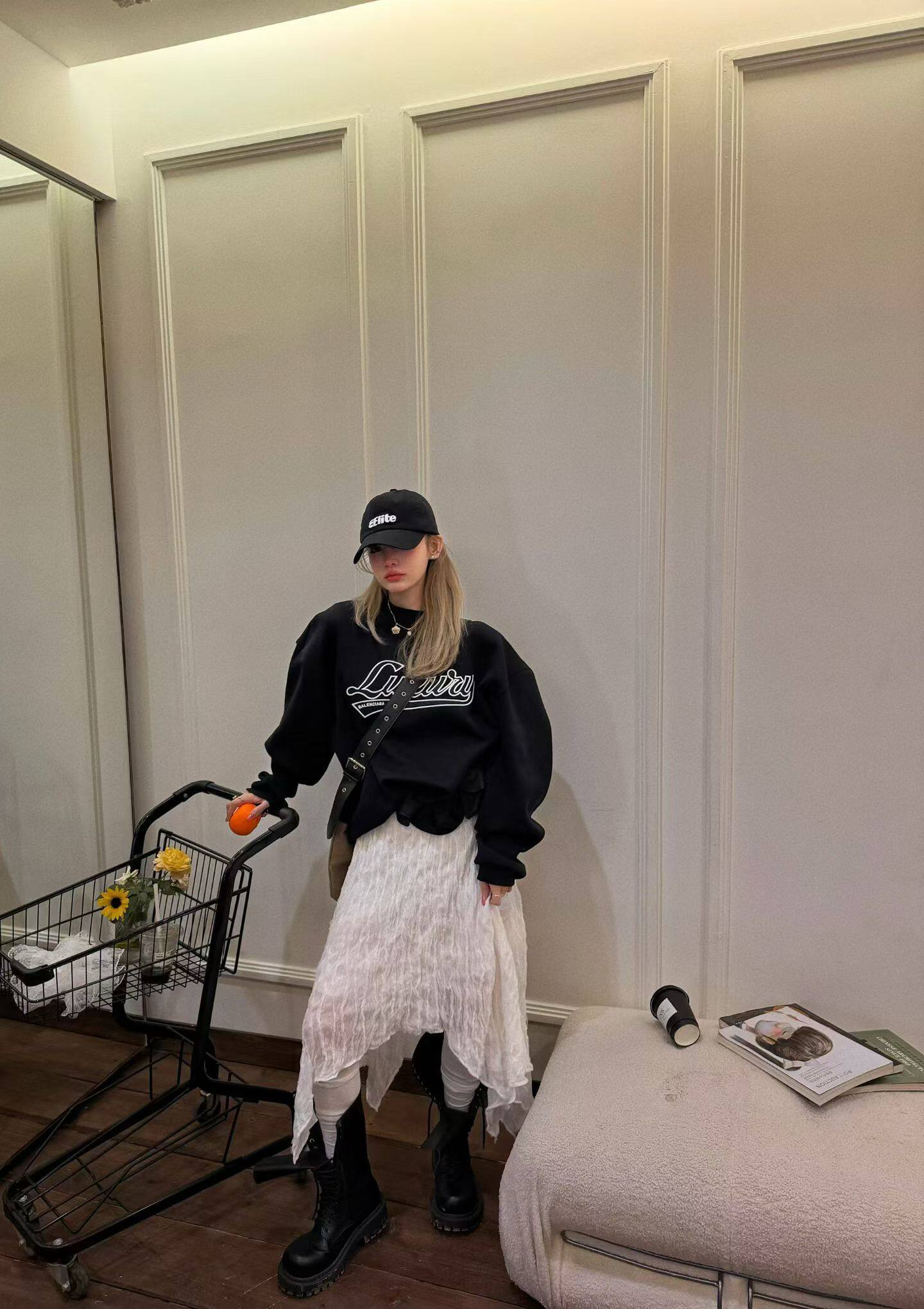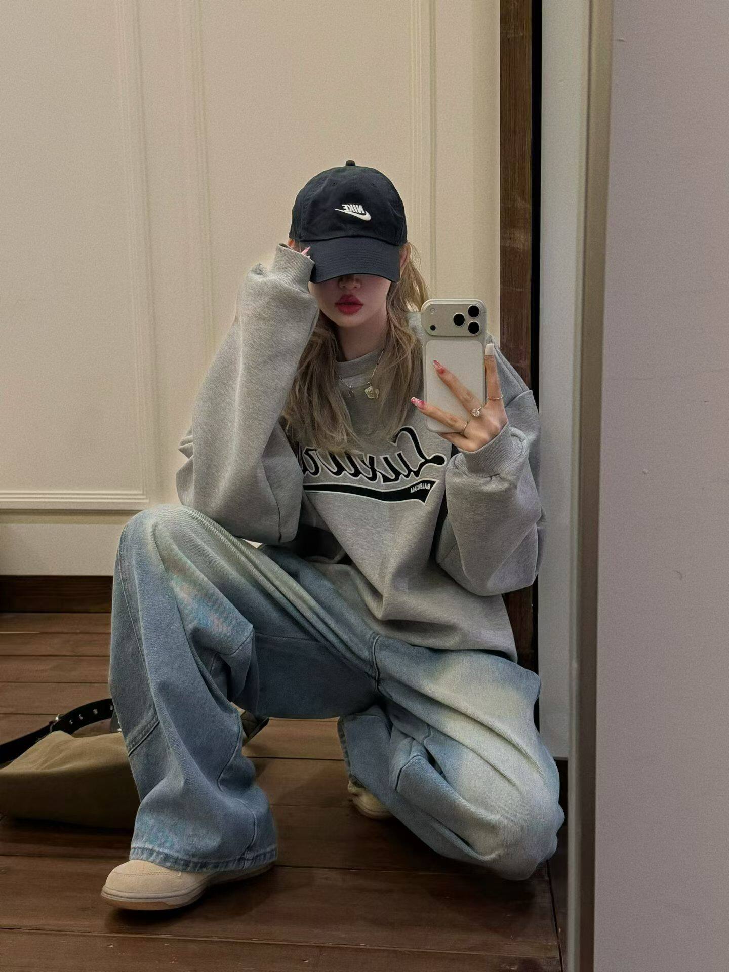 GOD财神2026春款 韩国东大门字母印花圆领卫衣女宽松慵懒卫衣