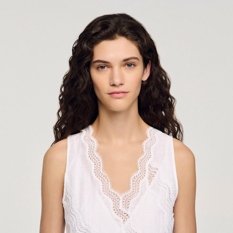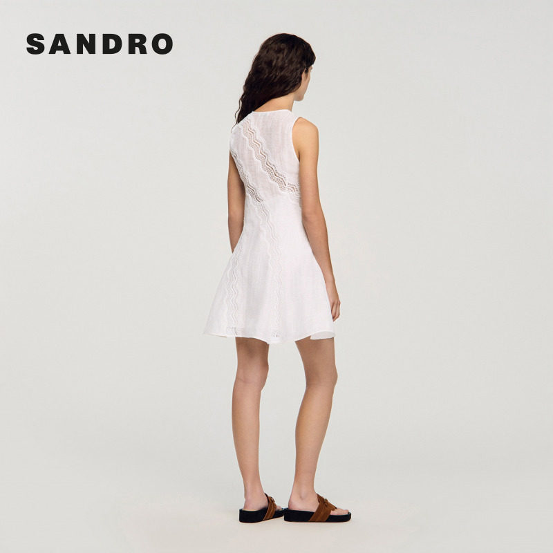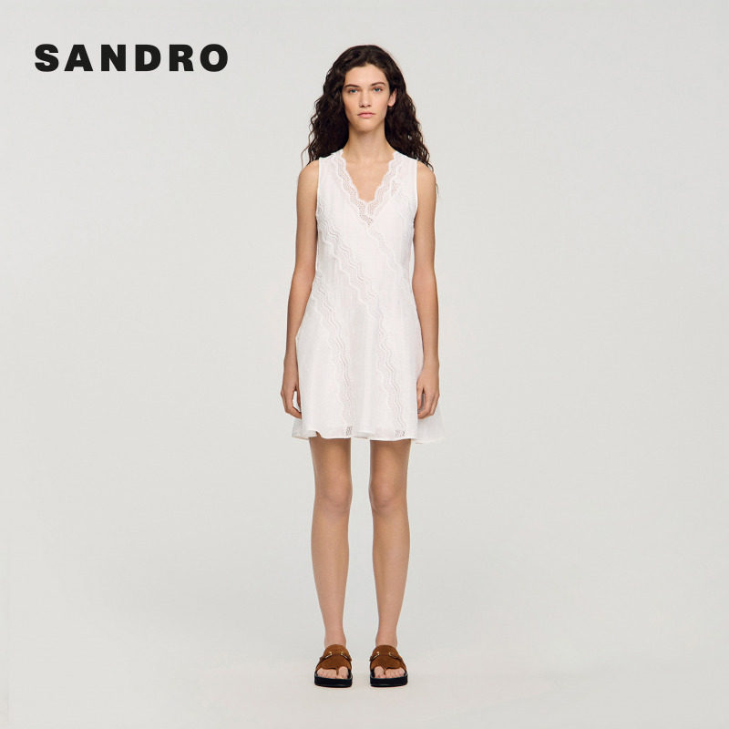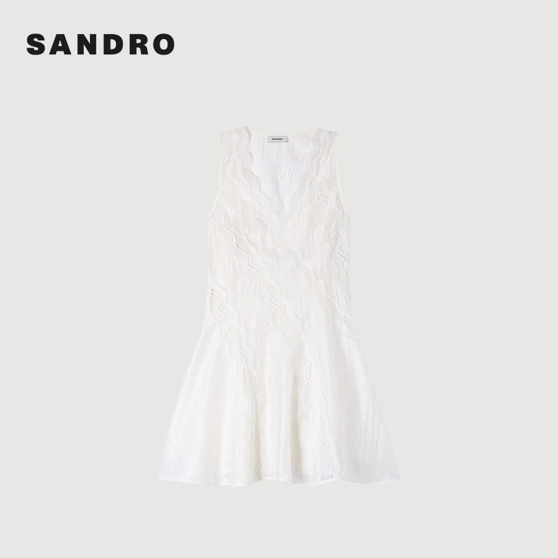 法式 新品 女装 新款 白色波浪形刺绣图案连衣裙 首发SANDRO2026春季