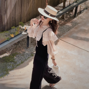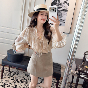 花边衬衫 PINZIKO 衬衣荷叶袖 设计感蕾丝高珠纱长袖 大兔子