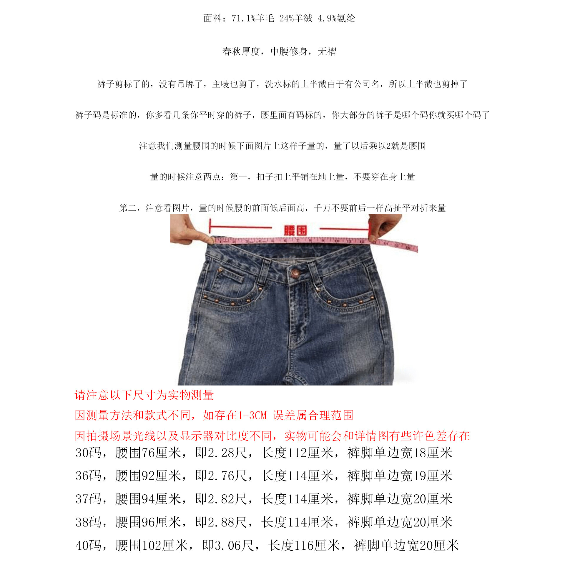 商务休闲长裤 YW407D春秋款 羊绒中腰修身 休闲裤 黑色 男式