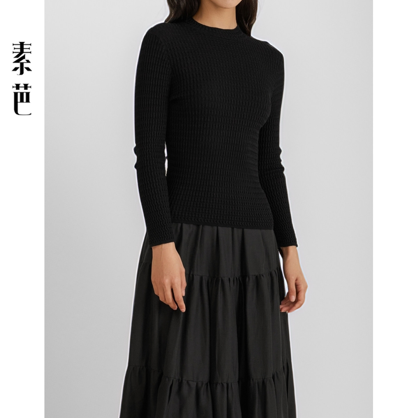 女士春季 针织衫 时尚 修身 SS0953 百搭休闲长袖 素芭肌理感半高领毛衫