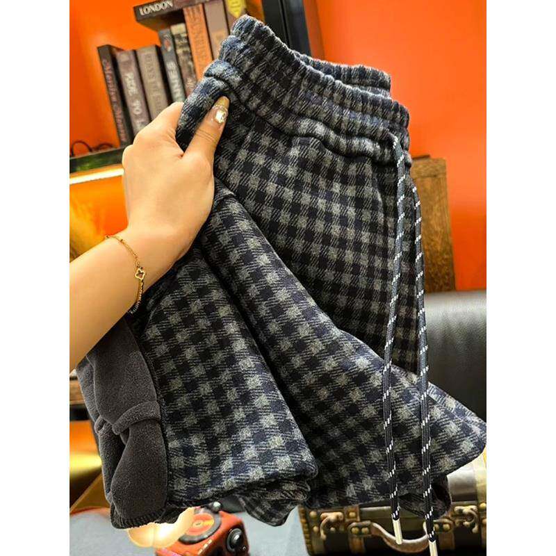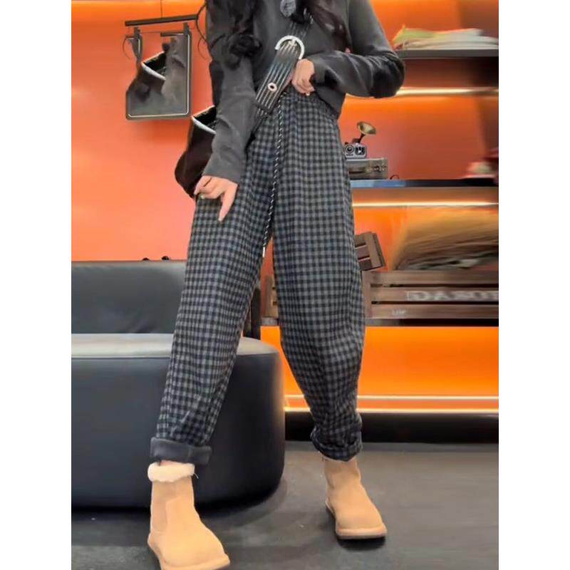 时尚 新款 直筒裤 韩版 子 SPYB格子加绒休闲裤 宽松加厚哈伦裤 女春秋季
