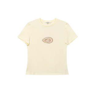 刺绣立体贝壳短袖 复古荃手工不规则珠绣亮片 T恤 细闪星芒 TOP家