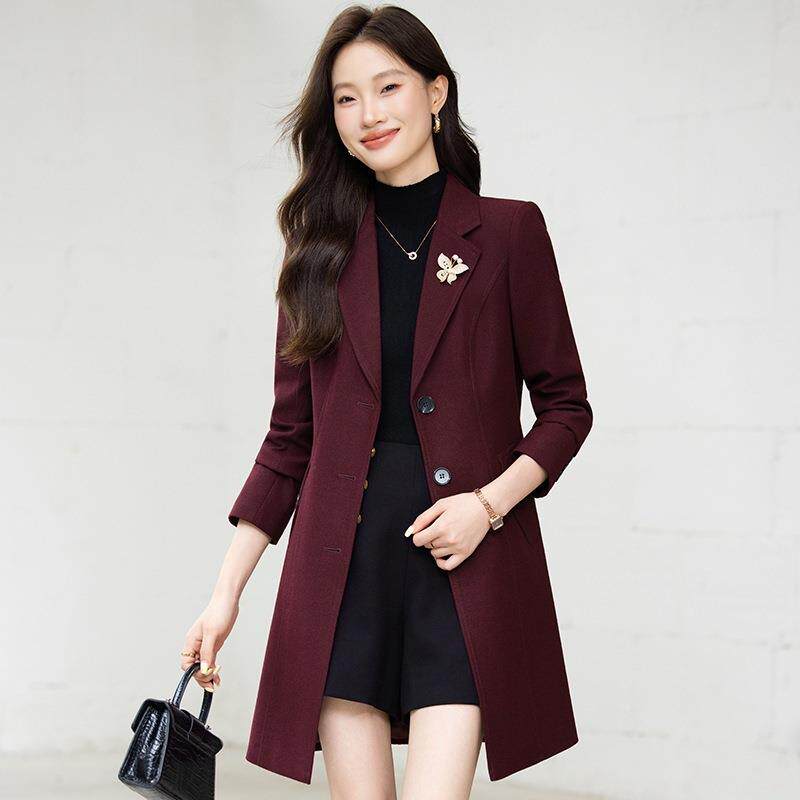 长长袖 新款 小西装 气质秋YKZ9101冬季 领外套衣女瘦时尚 毛呢大中款