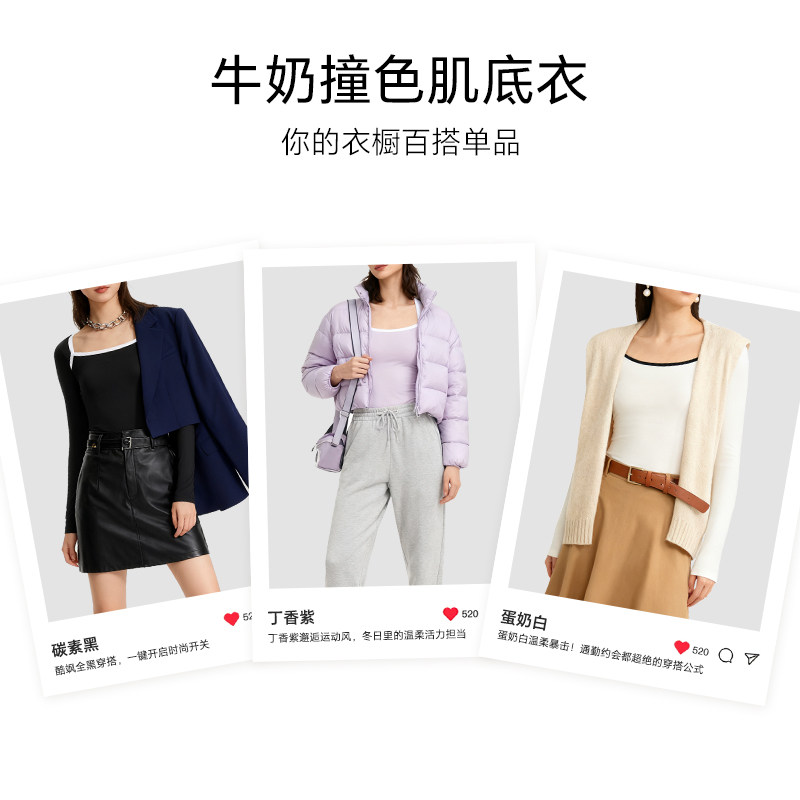 恒温内搭打底上衣女装 本周2件装 50S轻保暖肌底舒适透气方领长袖