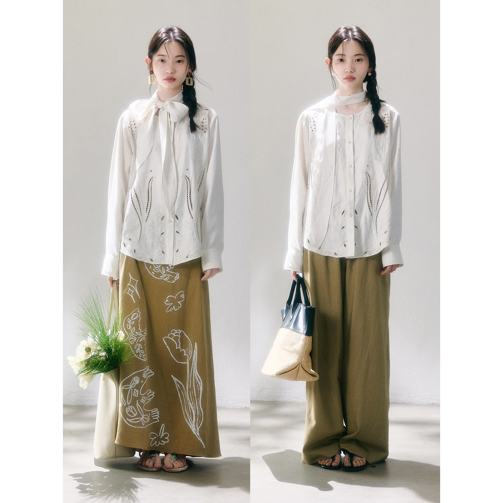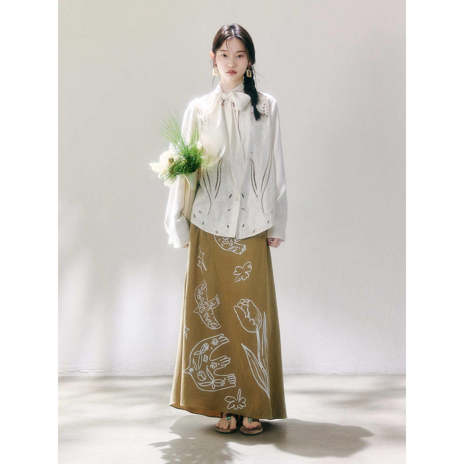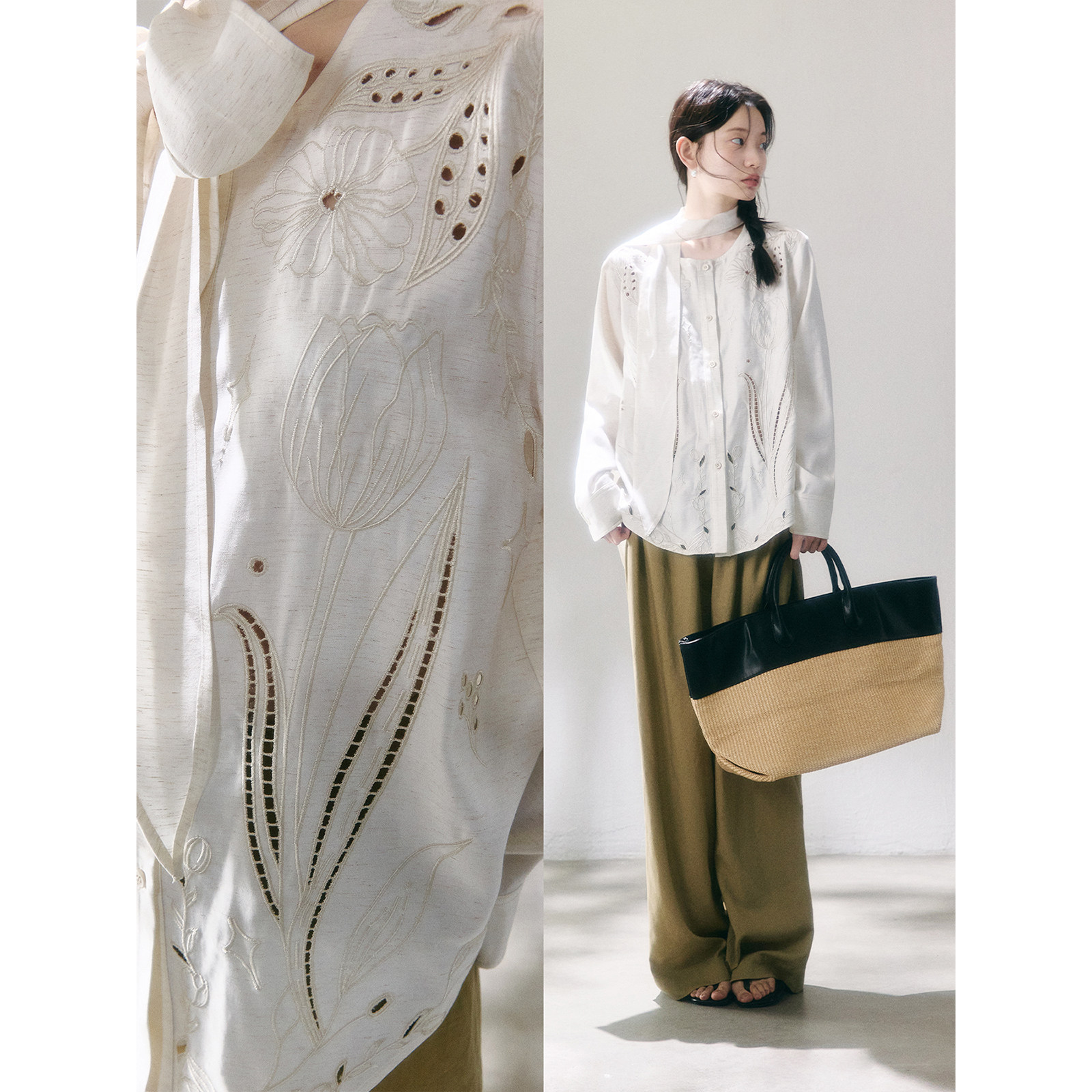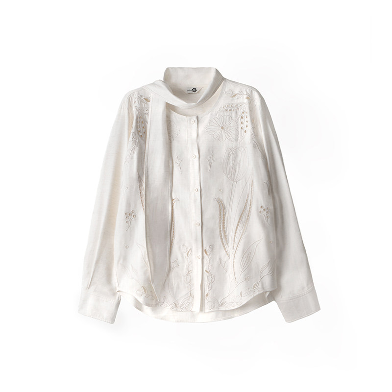 衬衫 郁金香绣花镂空刺绣飘带领长袖 慢调都市 有耳uare原创设计