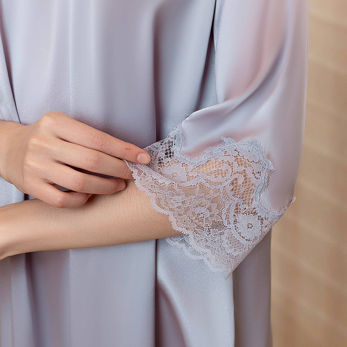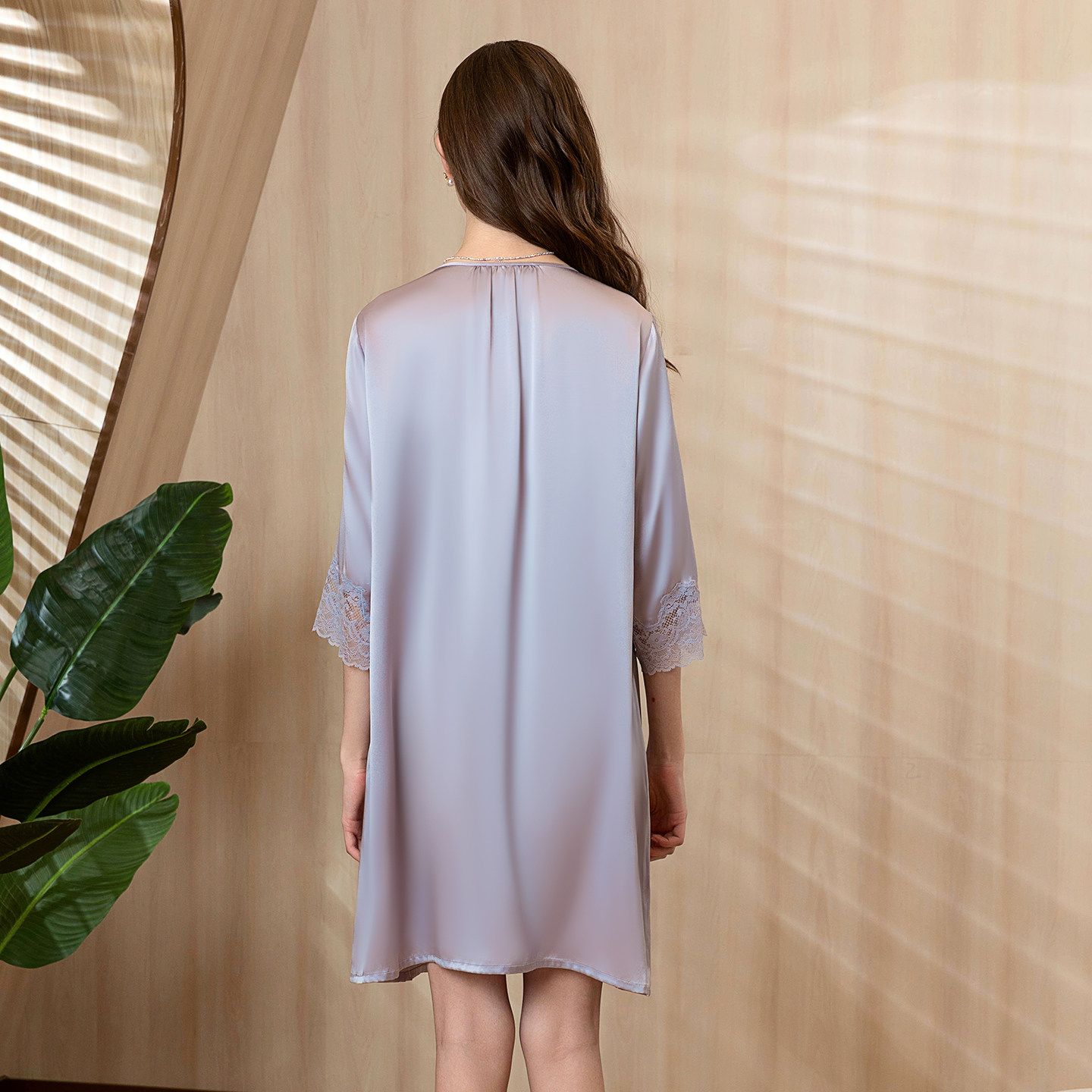 美标真丝睡裙女夏季 性感桑蚕丝家居服睡衣 真丝蕾丝花边V领七分袖