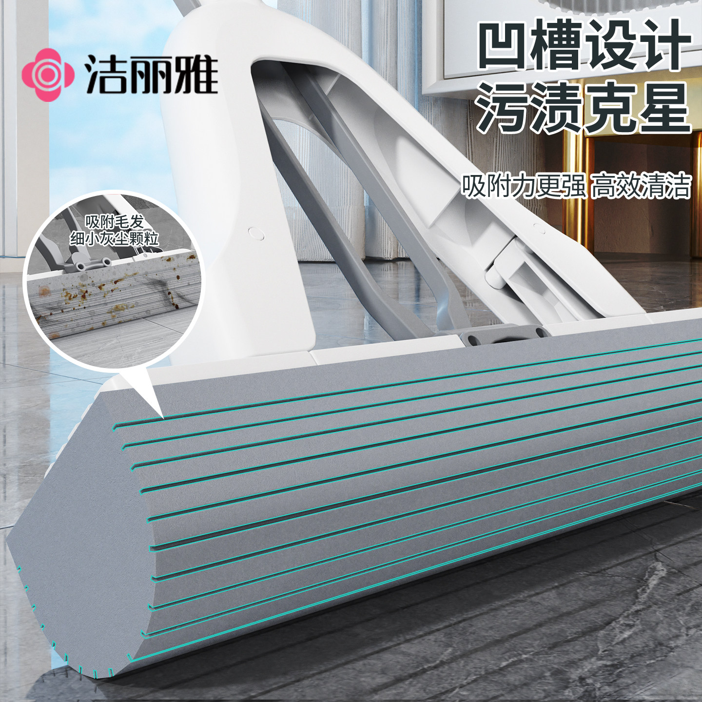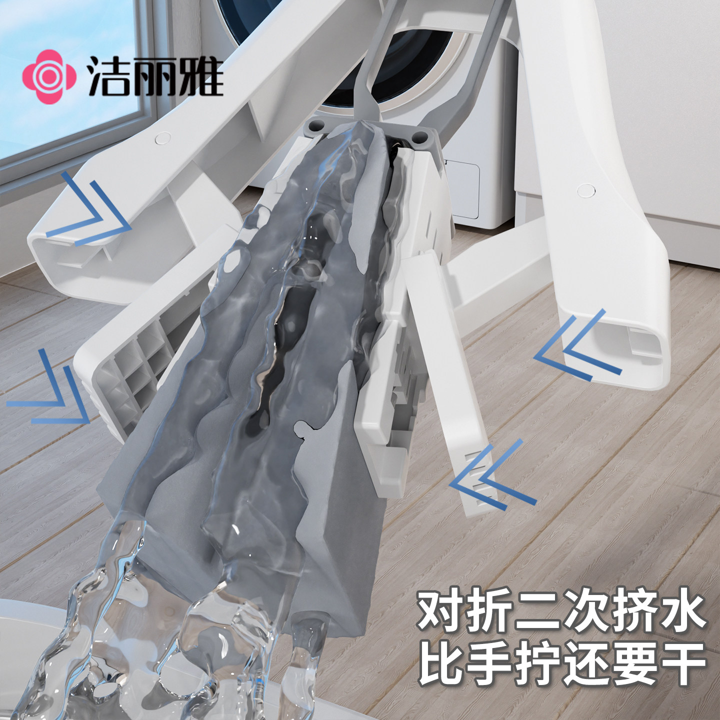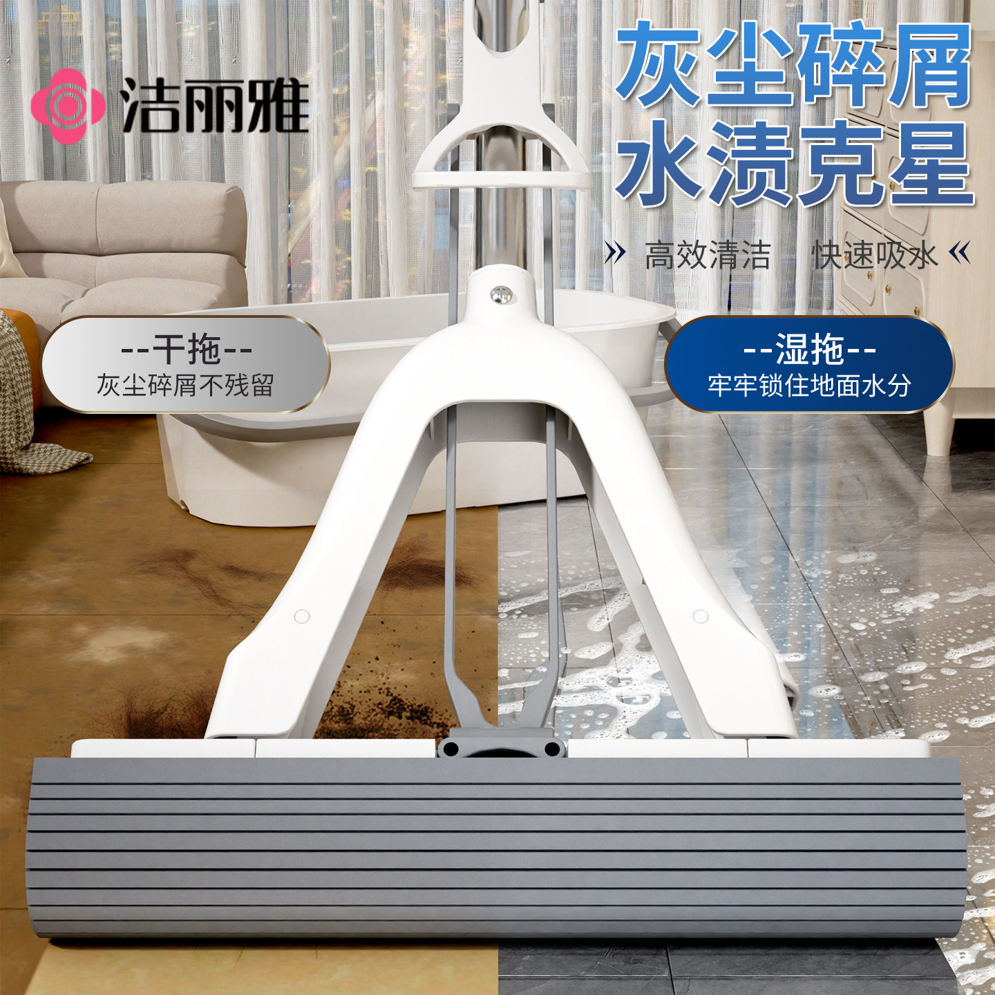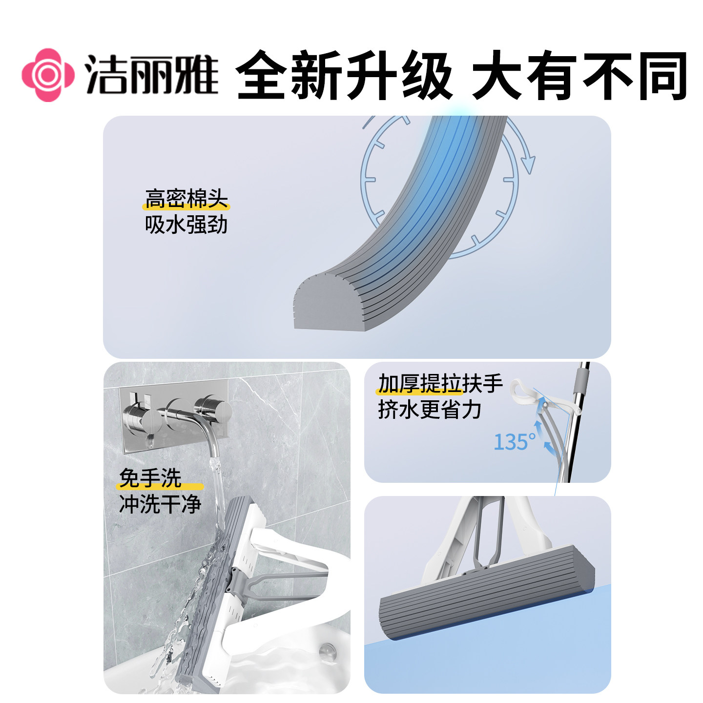 洁丽雅胶棉拖把2025新款 家用一拖净干湿两用吸水免手洗海绵头拖布
