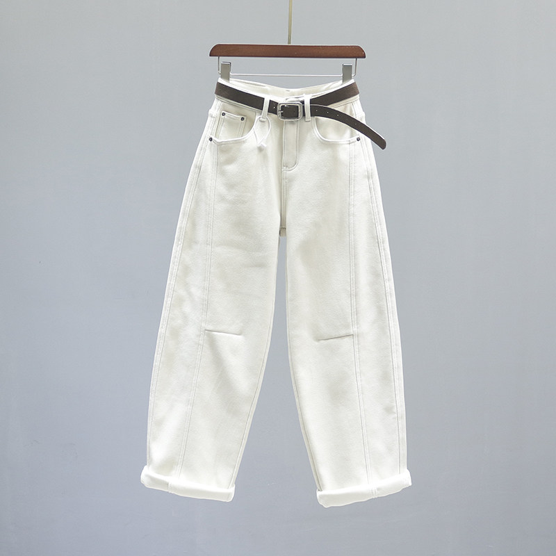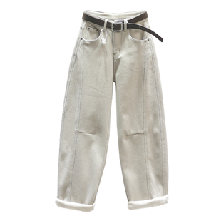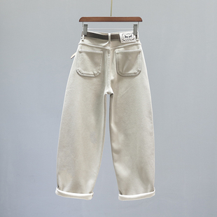羊羔毛阔腿裤 一条过冬 2025年新款 女冬季 高腰加绒加厚直筒牛仔裤