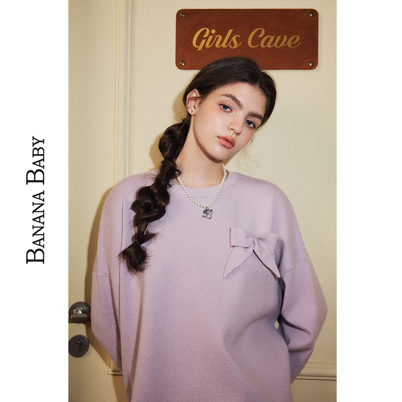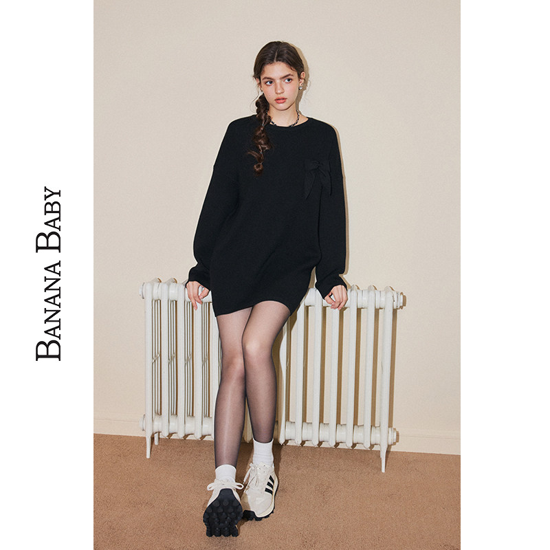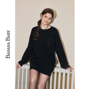 蝴蝶结卫衣短裙女简约显瘦气质连衣裙 新款 BANANA BABY2025年冬季