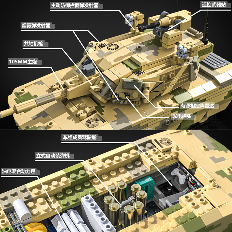 玩具军事重型战车积木模型新品 现货ztz 100第四代主战坦克拼装