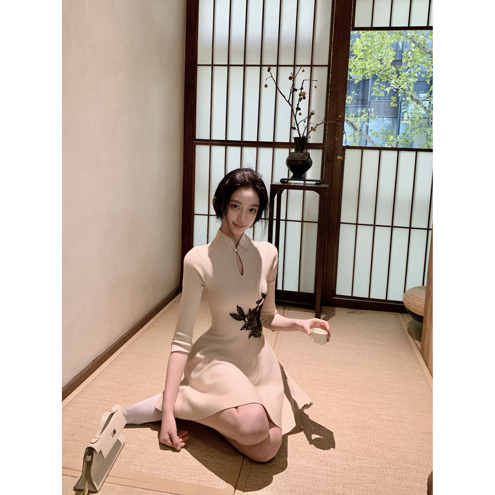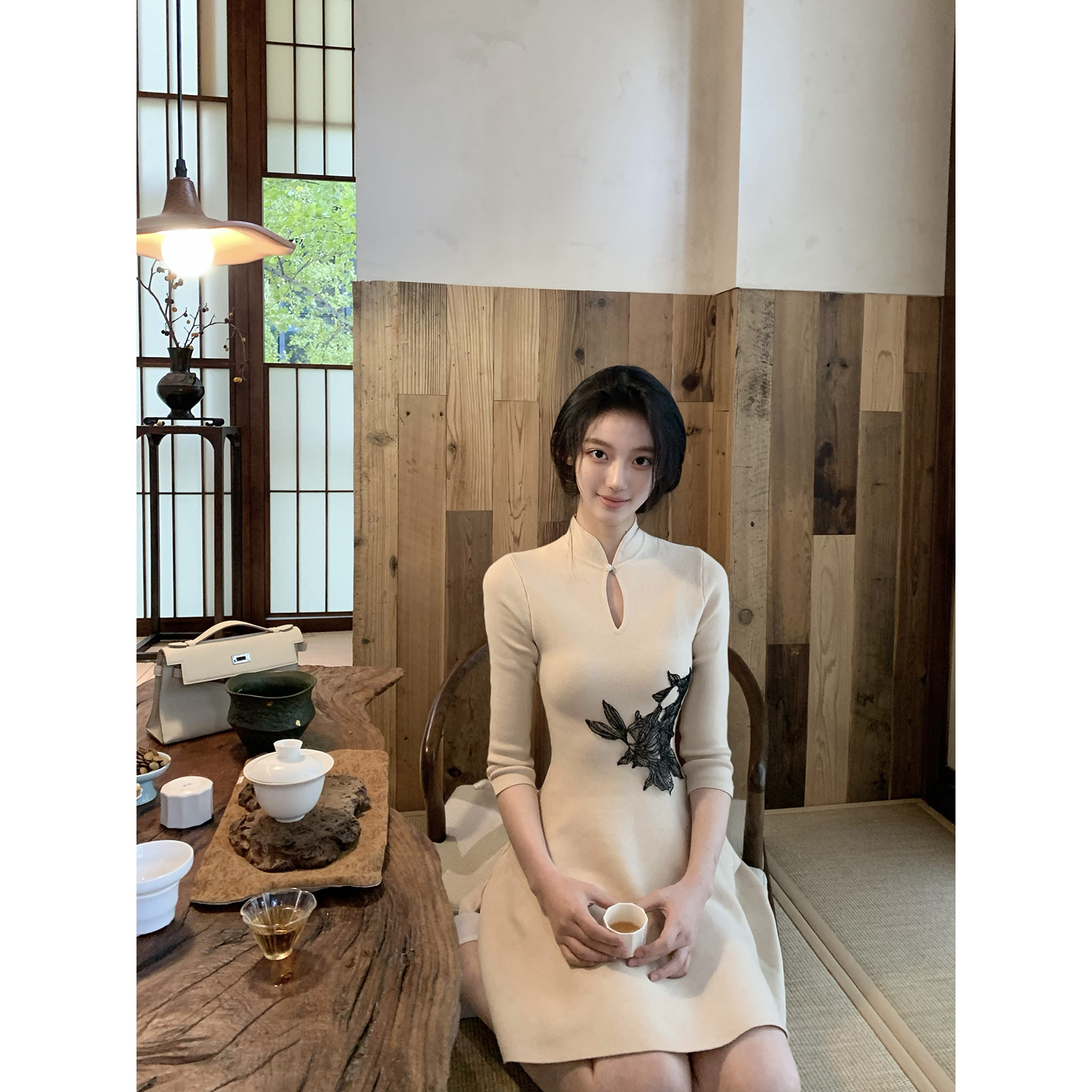 东方鸢尾 新中式 温婉大方气质旗袍蕾丝连衣裙 热狗很辣 Hotdog