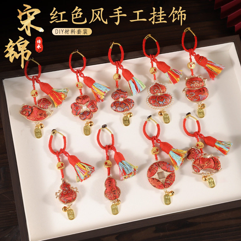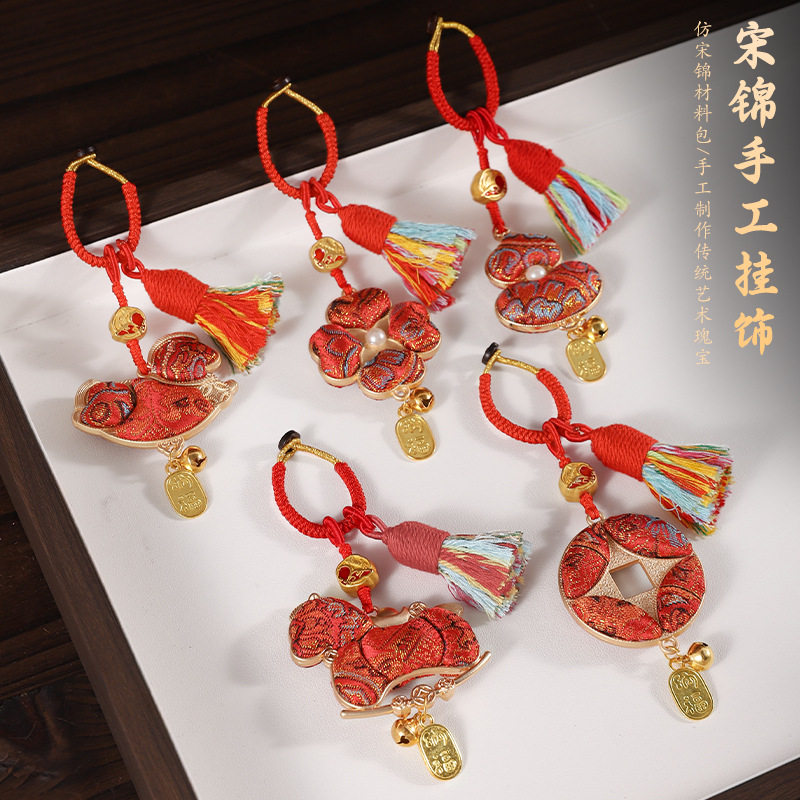 元 汽车载挂饰钥匙扣团建沙龙 旦手工宋锦小马挂件diy材料包新中式